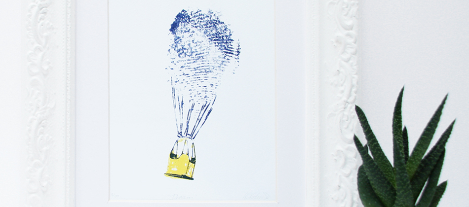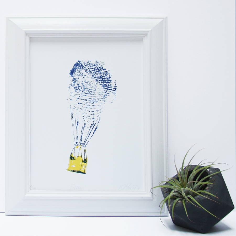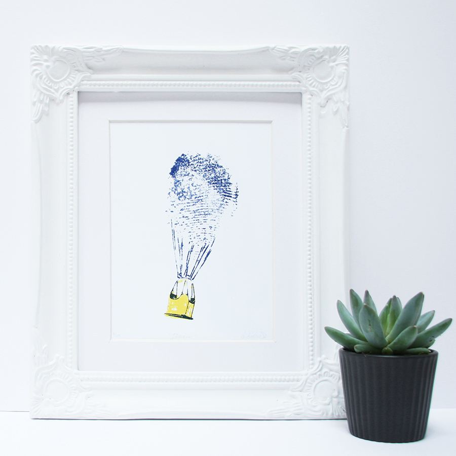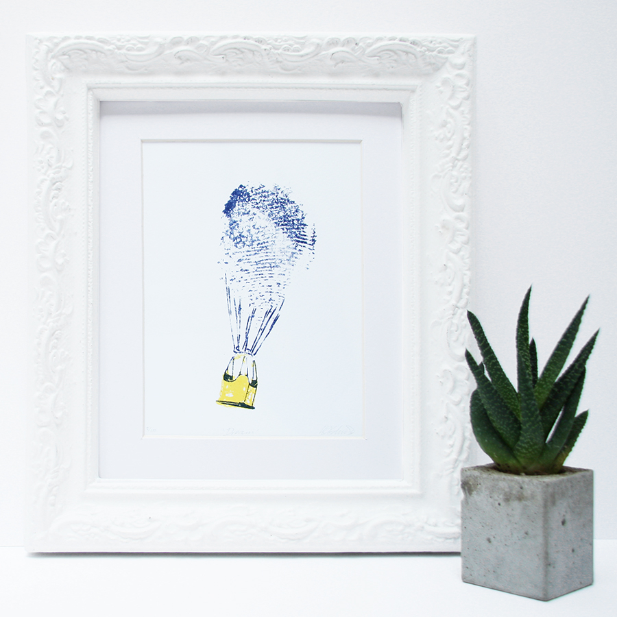Two colour silk screen print on Somerset Velvet 225gsm paper. This work is sold mounted or framed. There are three styles of frame to choose from, they can all be seen in the photographs. Hand printed by the artist.