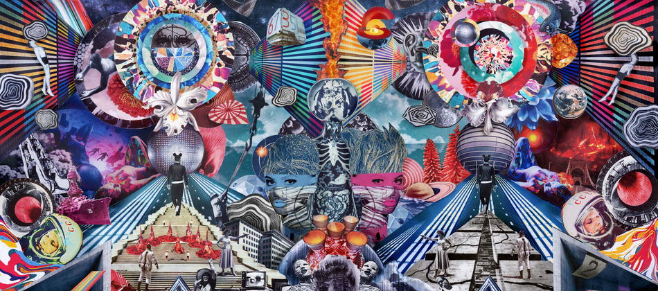 A signed large giclée print of a hand made collage printed on Xativia 230g stock.
