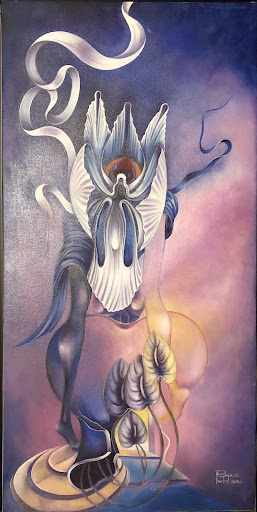 Medium: Acrylic on canvas Frame: Gold wood Signed: Bottom right
