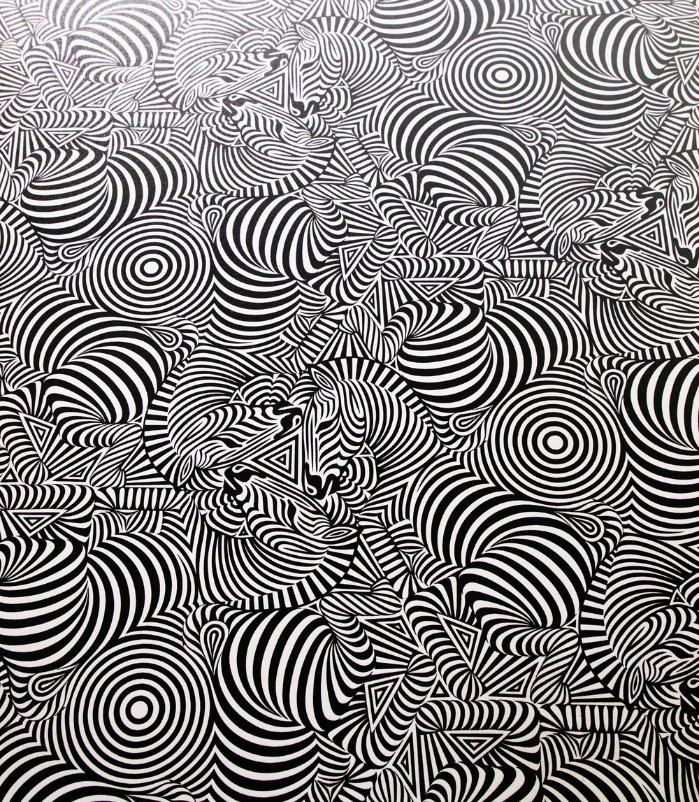 Optical illusion Zebras. Signed limited edition prints, unframed. Black silkscreen print on white paper 352gsm