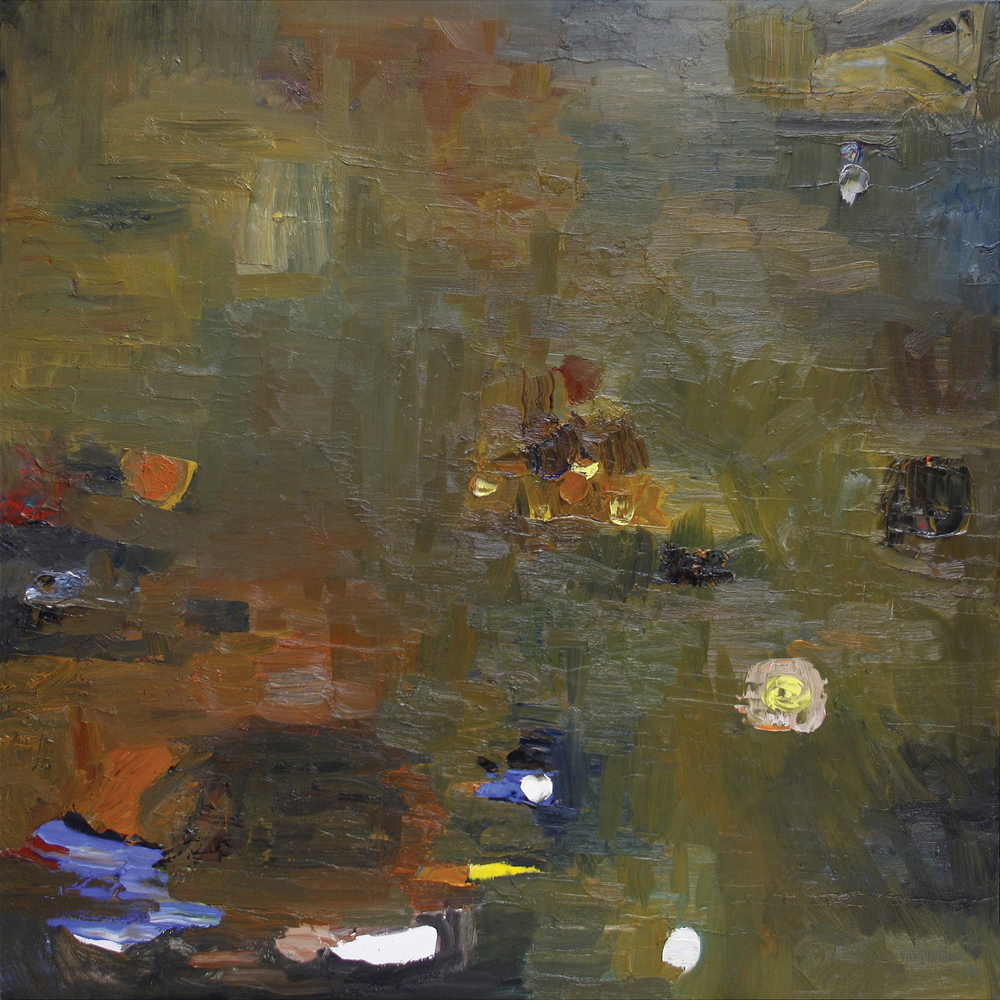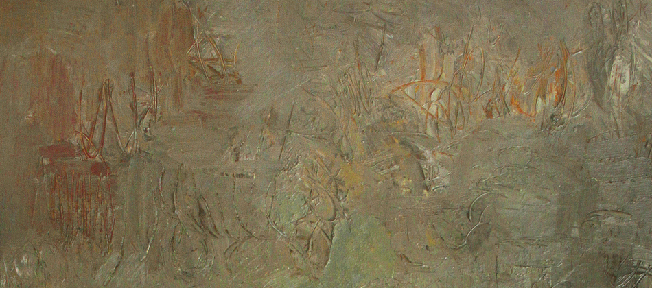 Vicky Drosos is an artist born in Greece, and she currently lives and works in Athens. She studied in the Athens School of Fine Arts, under the supervision of Prof. Anastasios Christakis, whilst she was working in the field of graphic design. After spending a considerable amount of time in Naturalism, she completely focused in Abstract Art. Vicky’s progression is influenced by the works of Abstract Expressionists such as Wassili Kandinsky, Kazimir Malevich, Antoni Tapies, Arshile Gorky, and last but not least Jackson Pollock. Improvisation, study of psychoanalysis, in addition with Japanese Art, have also contributed in Vicky’s studies, for depicting nature and its attributes, in connection with painting and personal experience, also in conjunction with the very process of painting, where the latter obtains a ritual and spiritual character, and more specifically when the canvas is being treated as a corpus which reflects feelings, memories and impressions. Landscape painting is the basic model of the creation of an “Ideal Place”, as this becomes unveiled through senses, fantasy and synaesthesia. The required result is not the depiction of a highlight, but the perpetuous movement of matter in relation to space, time and personal undergoing. Vicky’s works under the genre “Entropia”, completed during 2003 – 2006, engulfs this continuous movement, by making reference in an archaic and timeless world, where matter is on a constant kinesis and is being restructured through the free strokes on the canvas. The chromatic spectrum consists of hot and cold variations of grey, and the inkling of pure colours that tend to emerge. In later artworks such as “The Awakening” and “Mainland”, variations of grey have been substituted by saturated colours, maintaining a sense of balance and harmony, and thus creating joyful and optimistic feelings. Landscape representation is treated as an unsolved mathematical problem, causing queries about the structure of the cosmos and all these phenomena which shape our thoughts and our aesthetic criteria. The answer to this problem remains linked with the parts of our encephalus that takes us back in our childhood through experimentation and fantasy.