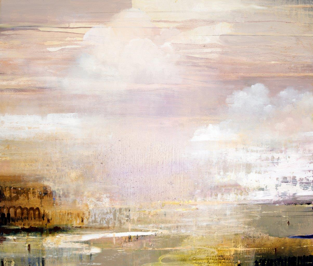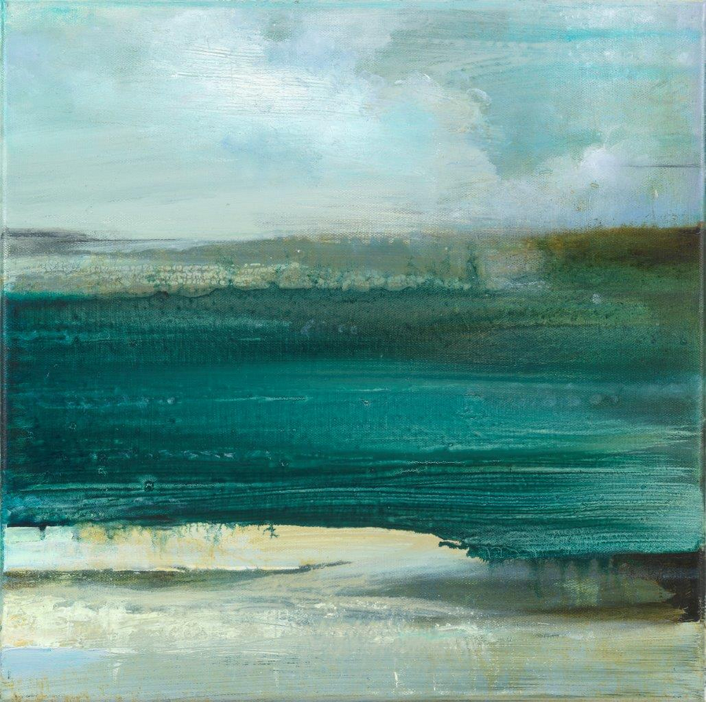 ‘They have all been made in my studio perched on the Porthmeor Beach in St Ives famous for its light qualities and glittering mica, under a huge glass skylight which helps to imbue each painting with its own inner light’.