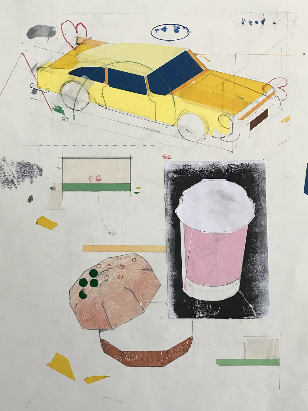 Will’s art practice is broad, including landscape, still life, and graphic design. His enquiries relate to themes such as habit and repeated behavior, routine, rituals and aspects of office culture. Beyond these day-to-day themes Will explores broader related ideas around the nature of life cycles and personal histories. Through a mix of representational drawing, assemblage and printing Will aims to create a diverse visual language through a tapestry of media including old paper, pencil, crayon, tape, ink, letraset, stickers and found material, a form which he sometimes refers to as Retro-Rymans.