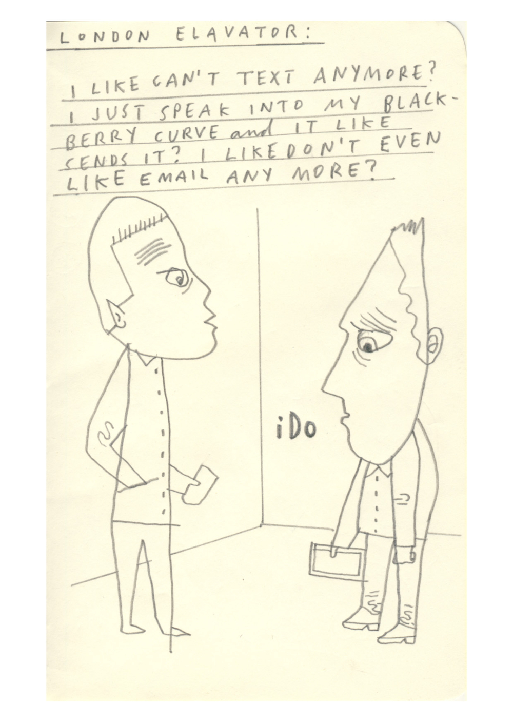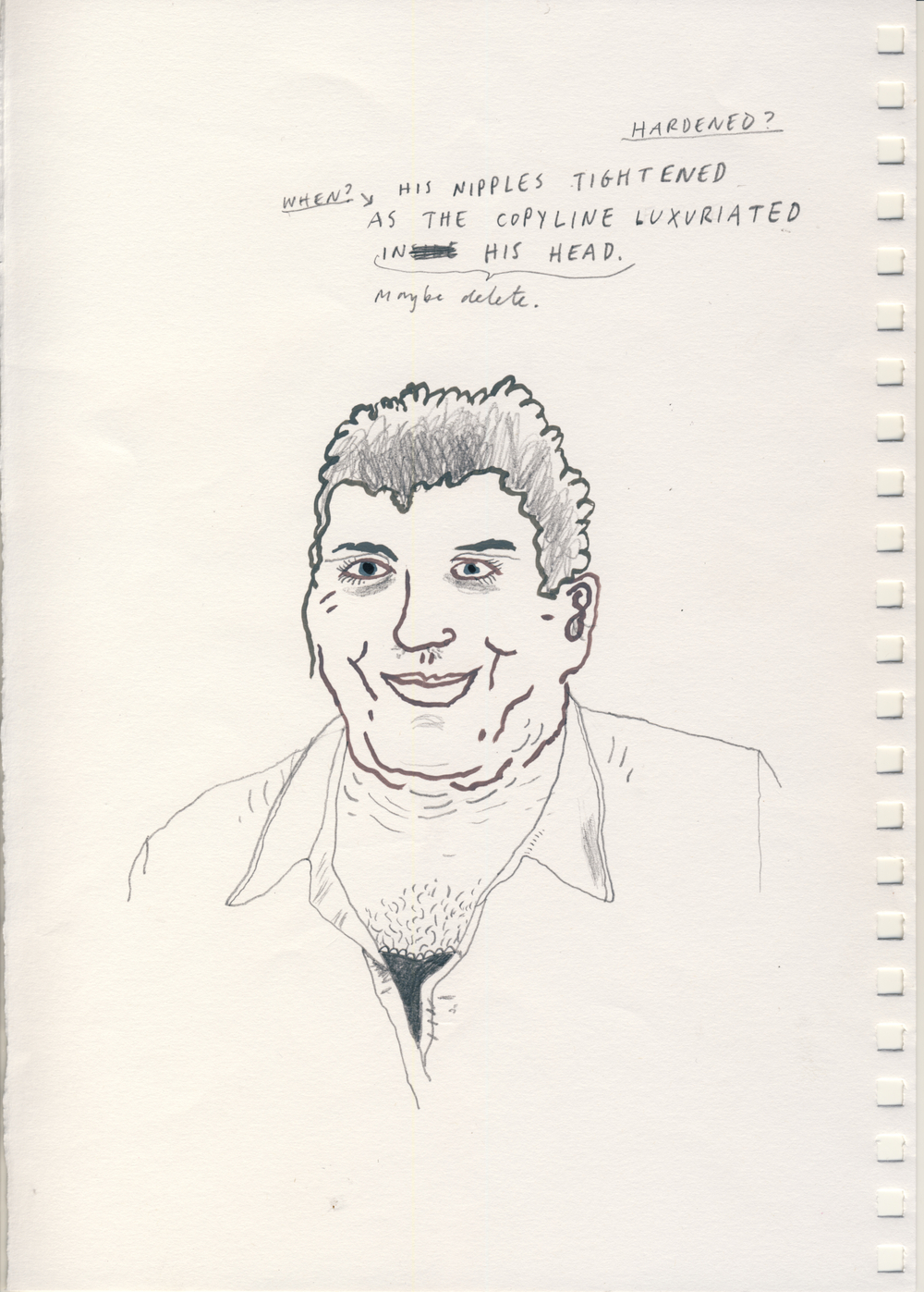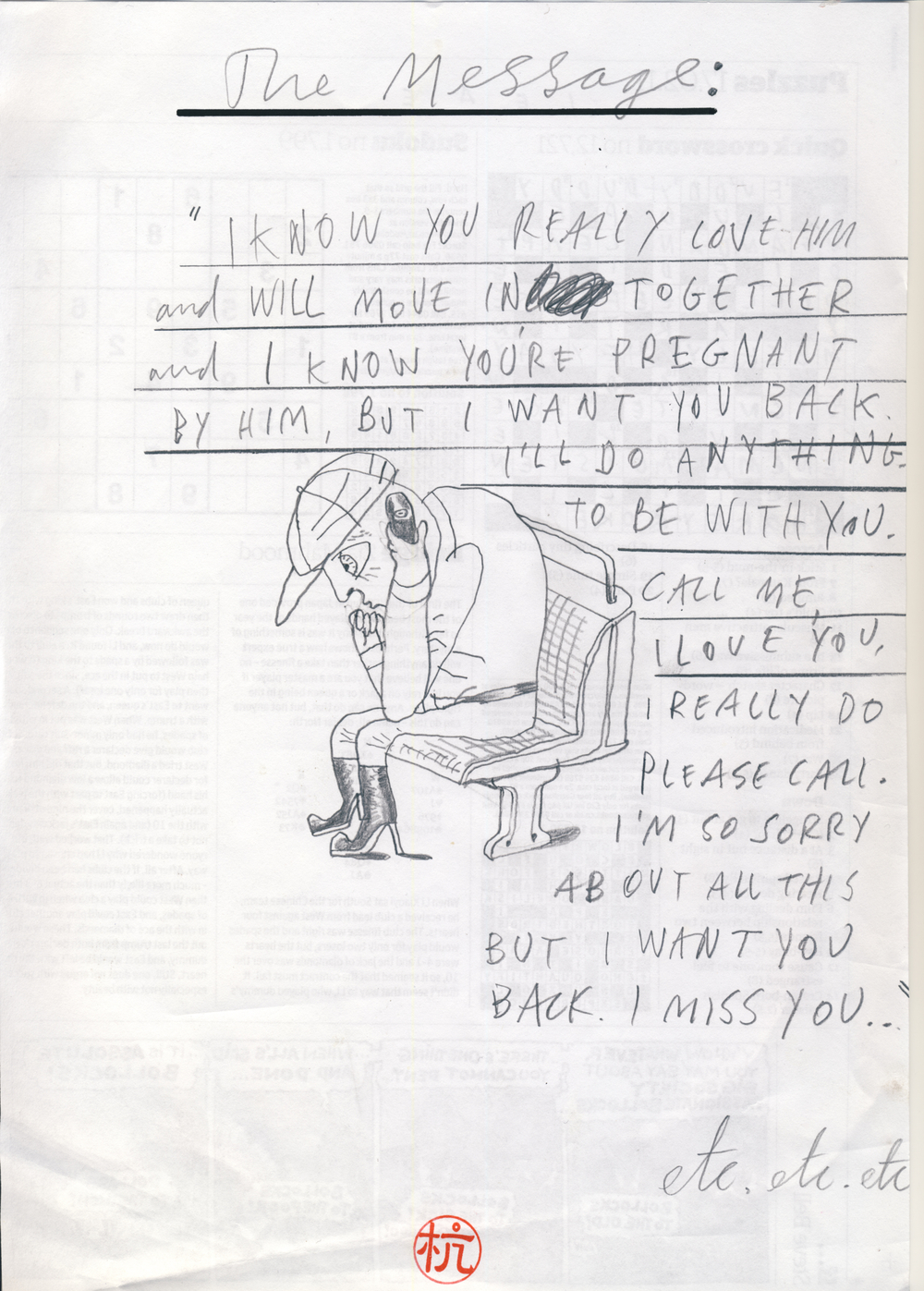 Davis will be showing hundreds of drawings in archive boxes. Some will be framed on the wall. Like most of Davis’s personal work, the subject matter is an attempt to understand the complicated reality of day to day living; love, sex, anger, work, money, people, madness and the other usual subjects, and will be sold employing a new fiscal strategy first cited just before the world markets came crashing down; the accurately named ‘the-munificent-double-dip-recessional-knock-down-generosity-price-structure-©’ otherwise know as the cash flow problematic: