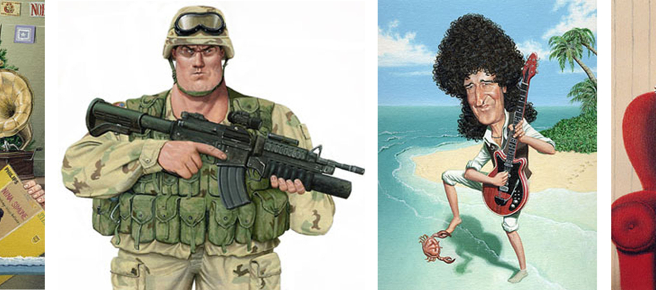 The exhibition will feature selected commissions from his career so far including works and caricatures for the Radio Times and his character designs for the Cadbury Coronation Street sponsorship animations, along with a small selection of his distinctive portraits. Although he has had work included in a number of exhibitions in the capital previously, his exhibition at the Coningsby will be his first solo showcase.