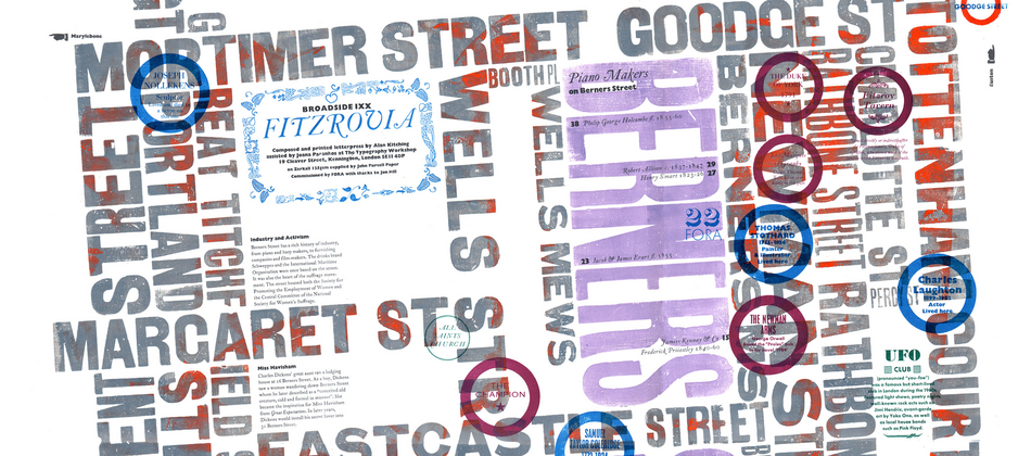 Alan Kitching is one of the world’s foremost practitioners of letterpress typographic design and printmaking. He is renowned for his expressive use of wood and metal letterforms in creating visuals for commissions and his own limited edition prints. Kitching cofounded the Experimental Printing Workshop with Anthony Froshaug and was influenced by him at Watford College of Technology in 1964. He later became partner at Omnific Studios where he started letterpress printing.