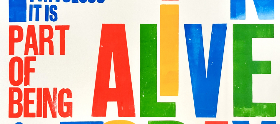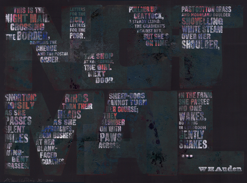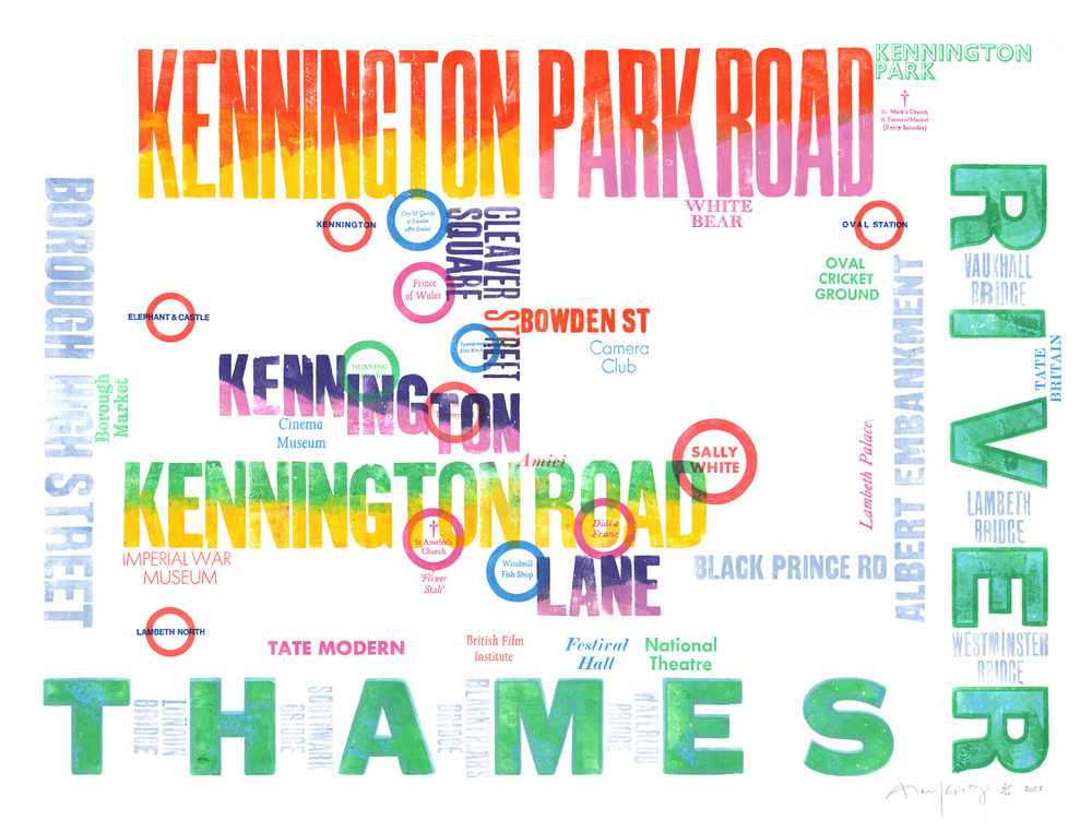 Alan Kitching is one of the world’s foremost practitioners of letterpress typographic design and printmaking. Alan is renowned for his expressive use of wood and letterforms in creating visuals for commissions and his own limited edition prints. In 1973 Alan began his own design practice in London with Colin Forbes. In 1977 he partnered with Derek Birdsall and Martin Lee at Omnific and started letterpress printing there in 1985. He began letterpress workshops in 1986 at Omnific Studios, Islington, London. He then went on to establish The Typography Workshop in Clerkenwell (1989). From 1994 he worked in partnership with designer/writer Celia Stothard (later his wife). In 1999, in partnership with designer and teacher, Celia Stothard FRSA, Kitching purchased a large collection of theatrical wood types, now named, ‘Entertaining Types’ and housed in Kennington, Lambeth, South London.