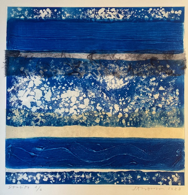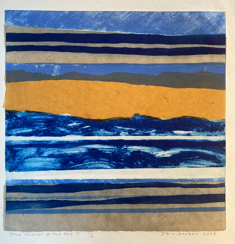 James Anderson, though working as a doctor, has always had a great interest in visual art - he interspersed a degree in history of art with a medical degree. His interest in printmaking has developed over the last ten years and has embraced many techniques including etching, chine collé, woodcut, and carborundum. He likes to explore the expressive quality of print through colour, material and gesture and particularly enjoys the painterly possibilities of carborundum. His work employs many of these techniques in a single print using multiple plates to exploit and demonstrate the different textures and qualities these different processes possess. For their gestural qualities his influences have included Robert Motherwell and Howard Hodgkin but he also enjoys the superlative linear etchings of David Hockney and Ben Nicholson.