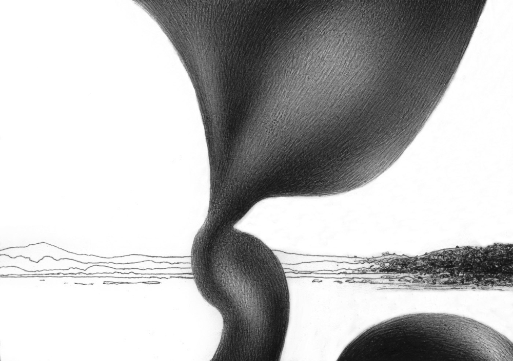 Much of Alberto’s initial inspiration derives from the tangible landscape of this world. He seeks to draw a line of correlation between what he sees – all the forms of nature that interest him in their objective, formal meaning – and their connection to the internal landscape he perceives within himself, to which he gives shape. Combining his observational drawings with other forms and images arising from his memory and his notes, he constructs abstract yet possible, visit-able landscapes.