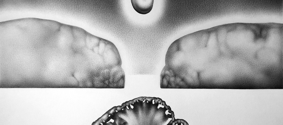 Whilst he has also trained and practiced as a fine art painter, more recently Alberto has focused on the outwardly unassuming ballpoint pen as his main medium. Its often-underestimated characteristics are what draw him to use it; with it one can create areas of subtle shade as if it were stick of graphite, yet also produce areas of dense blackness as deep as pure ink. It also requires discipline and precision, since there is no possibility of erasing marks once they have been created, which adds tension to the act of creating nuance; an unexpected accumulation of ink, if not removed in time, can stain and frustrate the work of a whole day.