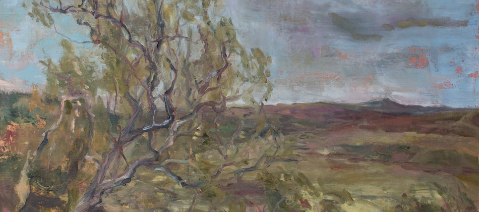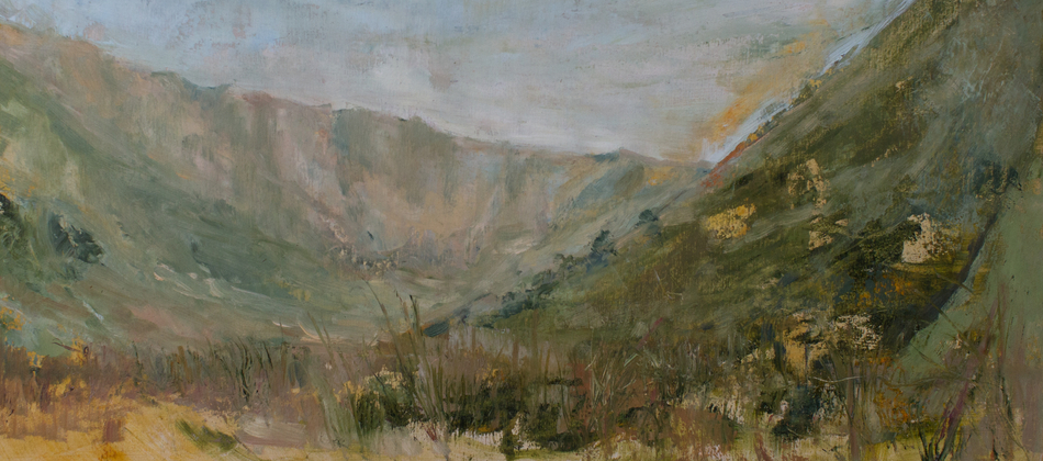 Australian light, Scottish heat and Cumbrian weather have all inspired the artist, who is based between South London and The Lake District. Her work is physically expressive and describes a love for chaotic order and tension mark making can produce. Naturally drawn to landscapes she always travels with paint and has become adept at packing lightly in order to work anywhere from Scottish lochs, to the top of Cumbrian fells, to farms in the Australian bush.