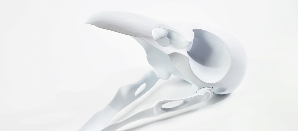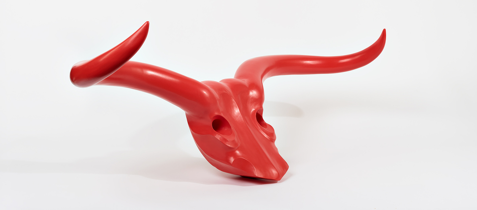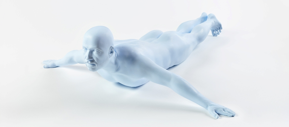 Reid’s skill as a carver is very much on display with these pieces, each sculpture acutely rendered in his signature realist approach. The presence of several new nude works also shows his continued interest in the human form. The point of departure from his current oeuvre is in his almost monochromatic application of colour to illuminate his chosen subject. Reid’s use of single tones, and a palette that is as far removed as is possible from what we would consider naturalistic, at once emphasises the draughtsmanship in his work and brings his sculptures into the realm of the abstract. It is this perceived dichotomy that presents an exciting challenge for the viewer, and demonstrates Reid’s confidence as an artist.