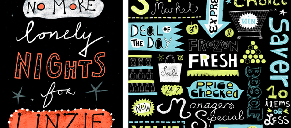 The terrifying Linzie Hunter originated from the barren highlands of Scotland but now resides in a North London suburb where she feasts on worms and grubs whilst working for clients including Random House, BBC, The Guardian & Little Brown. Linzie recently hit the headlines with her lettering work based on the spam e-mails in her inbox. Her book ìSecret Weapon: 30 hand-painted spam postcardsî is published by Chronicle Books in Autumn 2008.