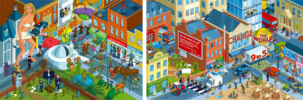 Born in rural Dorset, the diabolical Rod Hunt now inhabits the swampland of Greenwich, South London where he feeds mostly on shrubs and berries. Rod has developed a reputation for retro tinged illustrations & detailed character filled landscapes and among his client list he includes FHM, Maxim and Vodafone. Notably Rod illustrated the cover of the best selling environmental book ìChange the World 9 to 5î published by We Are What We Do. He is also Deputy Chairman of the Association of Illustrators.