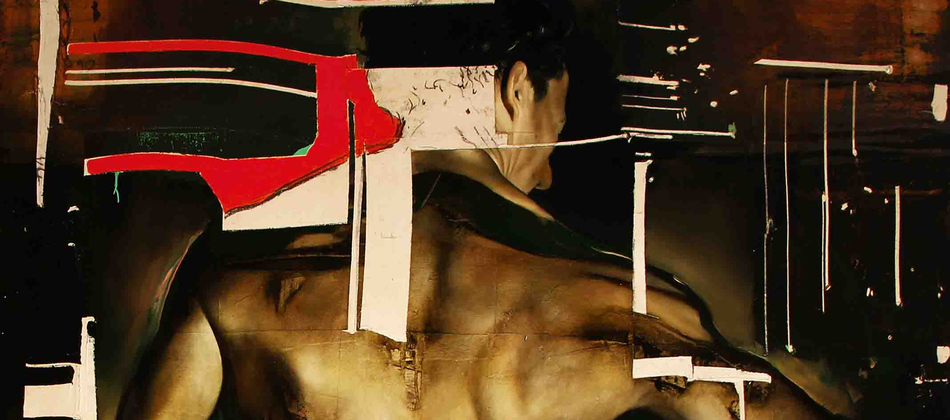 In this new series of work Tomas Watson is constantly painting until the work resonates, like musical variations. His work encompasses all disciplines, utilising collage, drawing, old photographs and painting onto canvas and jute cloth.