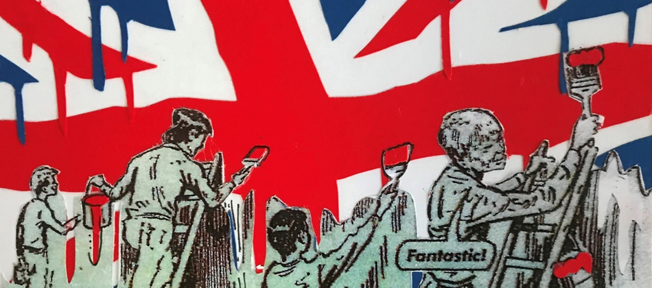 Chris Orr’s work has always been ‘of a moment’ and his quick drawings, entitled The Johnson Collection of Drawings, feature the politicians in various circumstances drawn with his usual wit and integrity. David Mach’s collages are well known. Both artists are Royal Academicians.