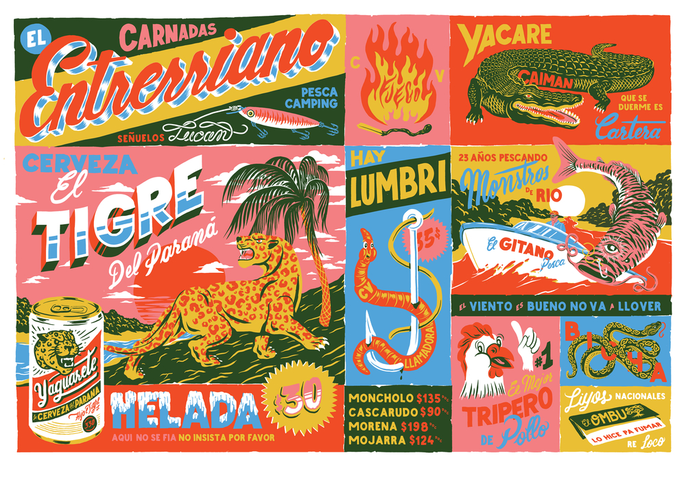 Alan is a graphic designer and illustrator based in Buenos Aires, Argentina, and has exhibited in the U.S., England, Paraguay and Chile. His work is characterised by his admiration for the artisanal and for regional identities, presenting them through his affinity for typography and lettering combined with simple printing methods such as serigraphy, risography and paint. He is an established and successful commercial illustrator, working on commissions for brands and companies including 7UP, Puma, Nike, Vans, Miller, Jack Daniels, KFC, Chronicle Books, Pavilion Books, and AirBnB Magazine.