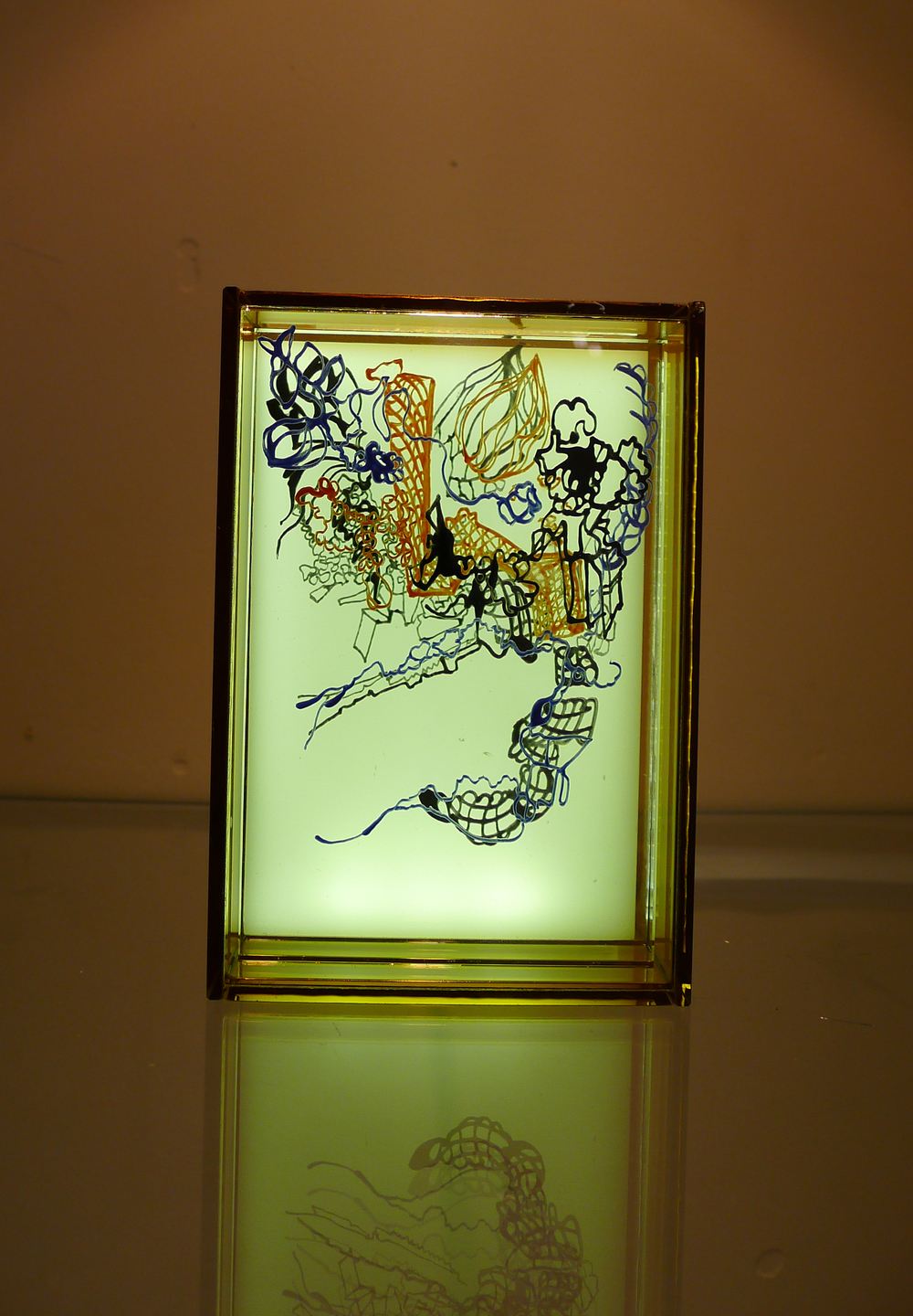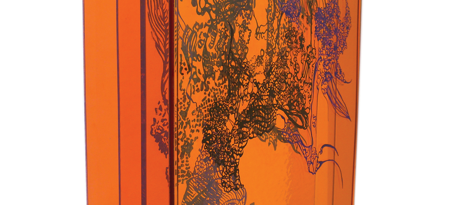 Broughs new collection of glass light paintings are set in strong laminated glass cases and incorporate her signature botanical and architectural illustrations. These hand painted cut glass panels come together to produce intricate multi layered compositions.