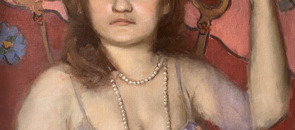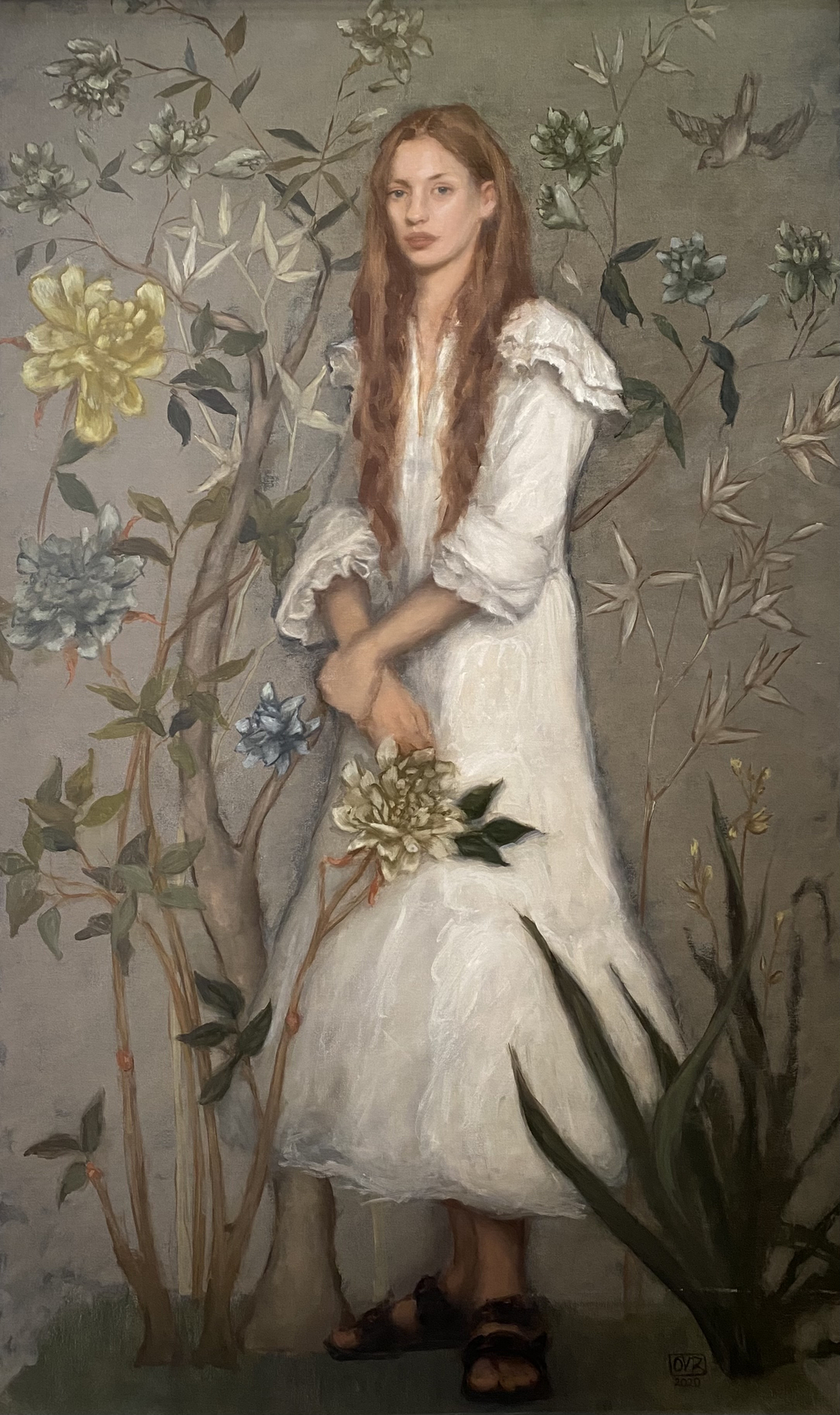 ‘Olivia is a portrait and figurative artist based in London. She is particularly interested in painting women, showing appreciation of elegance and subtlety of the female form. In any portrait painting, whilst it’s important to capture the light, fluidity and character of the subject, she thinks it’s equally as important to focus on the chemistry between the artist and the subject. She hopes to evoke a sense of harmony and balance or sometimes mystery and humour which then translates to the viewer. Most of the models Olivia has painted in this exhibition are old friends. Her passion and ambition is driven by these friendships as they continue to inspire her daily. She hopes to immortalise the beauty and unique characters of each friend.’