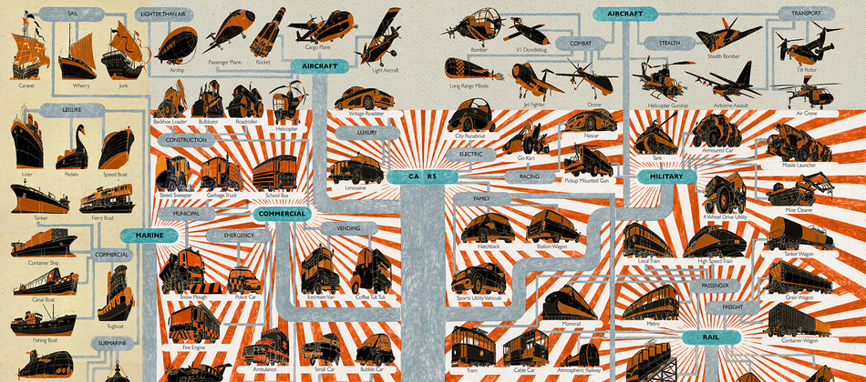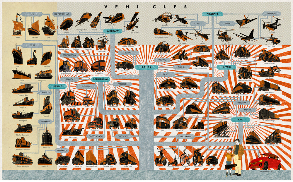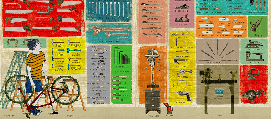 ‘A large and colourful book which beautifully communicates fascinating information, from types of cloud formations, to varieties of apples, names of tools, and constructions of family trees. All designed and illustrated in a playful and engaging way. Part art book part encyclopaedia – a book to lose yourself in.’ Lauren Child, on LoveReading4Kids