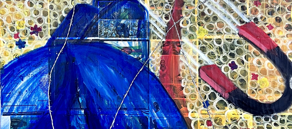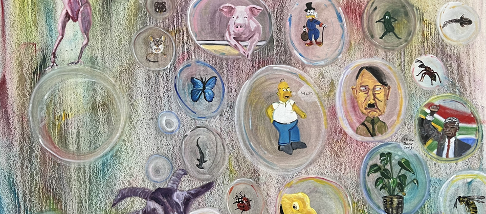 My practice centres mainly around oil painting and makes use of collage and other mediums to create impact. The artworks are accompanied by poetry.