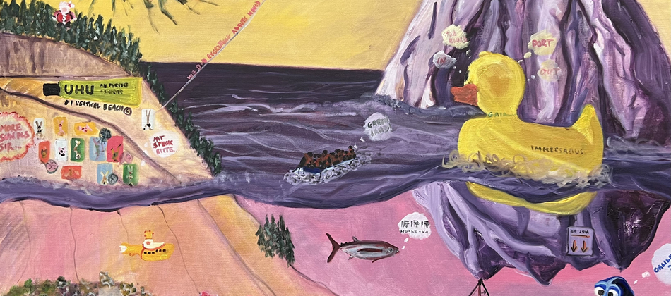 Take the example of Immersabilis, which looks at the concept of progress and human ingenuity – where even as sea levels are rising from climate change, we have created a vertical beach allowing us to sunbathe on cliff-sides and wish for sunnier days.