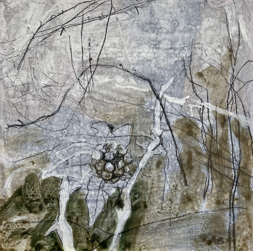 Working primarily in mixed media (acrylic, pencil, oil pastel, charcoal and collage), I am interested in layers and transparency. What’s seen and not seen. The transience, beauty and fragility of things.
