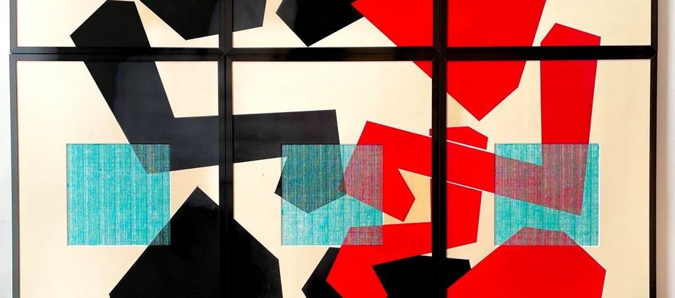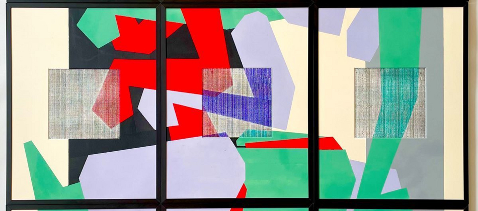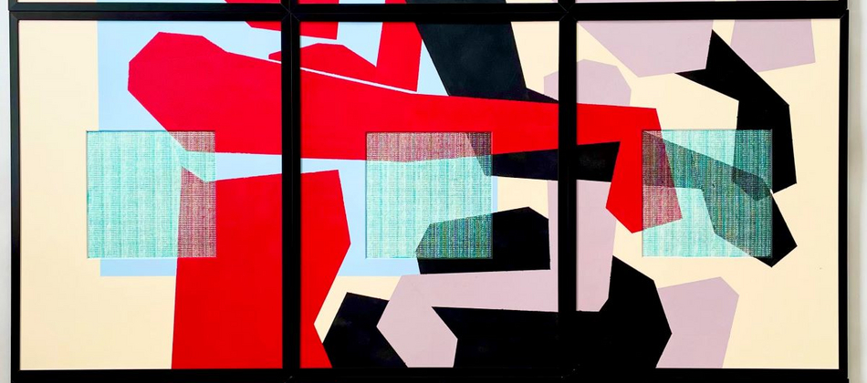 Each work reflects this central idea , the centrepiece being a large scale triptych: ‘Object Heaven ’ ‘Object Dance’ ‘Object Me You Us’.