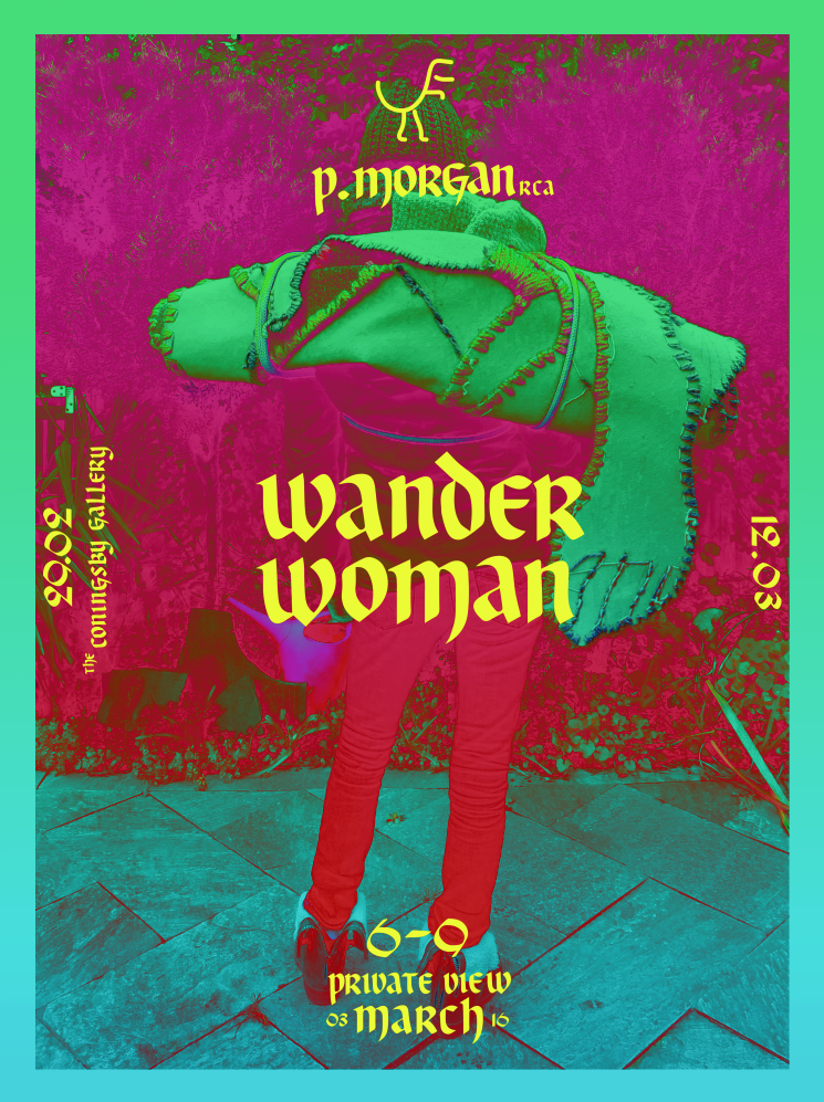 ‘Wanderwoman’ is an exhibition which discusses, disrupts and responds to today’s digital nomad - travelling without moving. The work in the show looks across the spectrum of working processes and narratives to discuss the world of the Digital Native. In today’s visual and digital landscape the world becomes smaller, but personal belongings are becoming a combination of over-excessive and expensive materialism. The Digital Nomad tries to break free of the world of capitalism to then create a world out of the limited resources, combining both an analogue and digital process to make ‘art’. Art that has a multiple function, from fashion to sculpture to product, which then can be rearranged or dissembled to become a rug, or even a wearable garment.