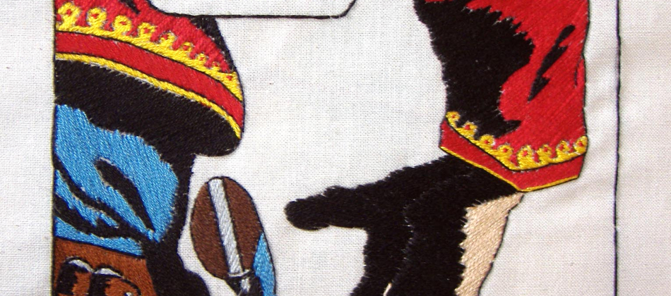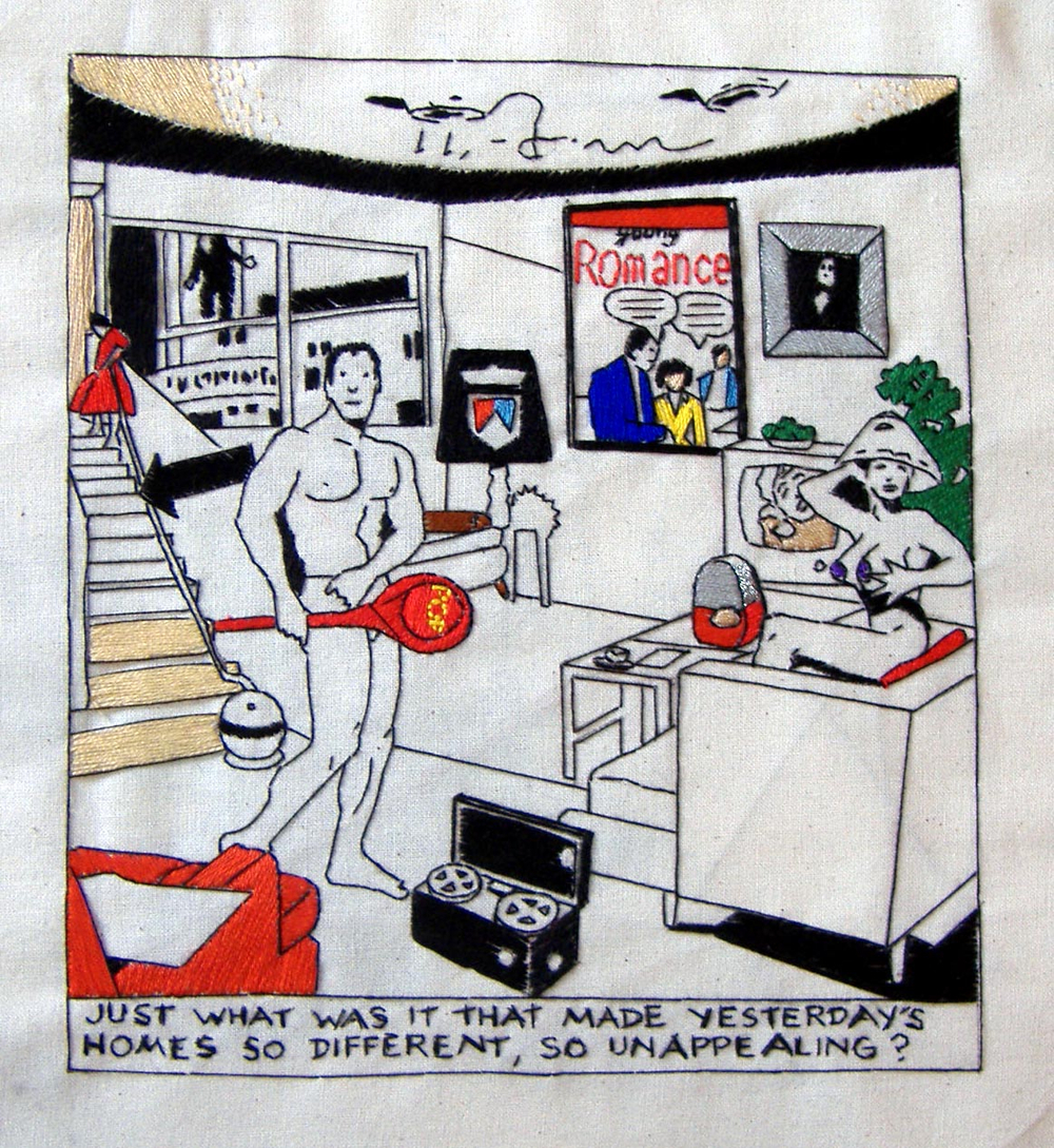 “Cushions are kids stuff. My embroideries are going where no embroideries have gone before…They are rough and tough and full of spunk!” Malcolm Poynter.
