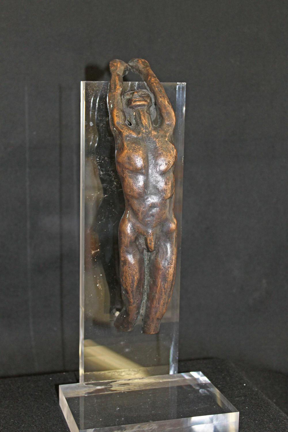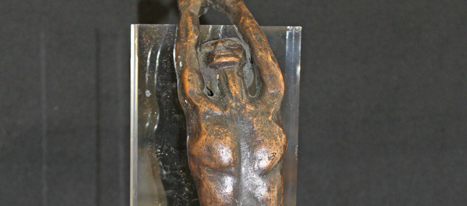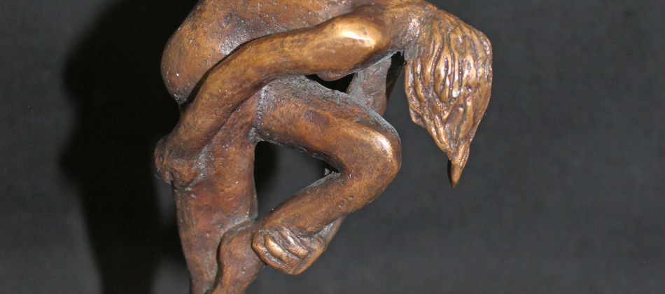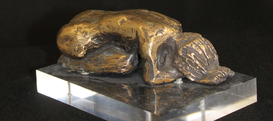 She now works in many materials utilising plaster, paint and recycled items. Also producing items which are later cast in bronze – having had a course in bronze casting to better understand the process.