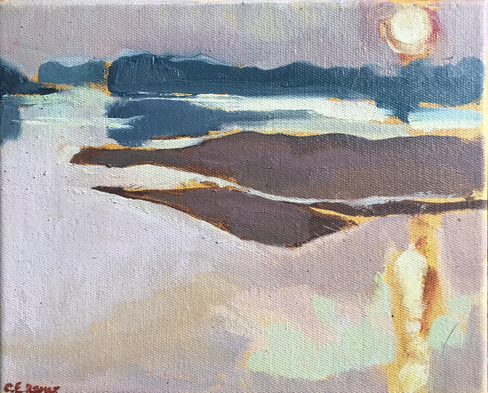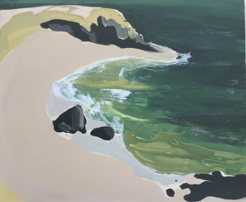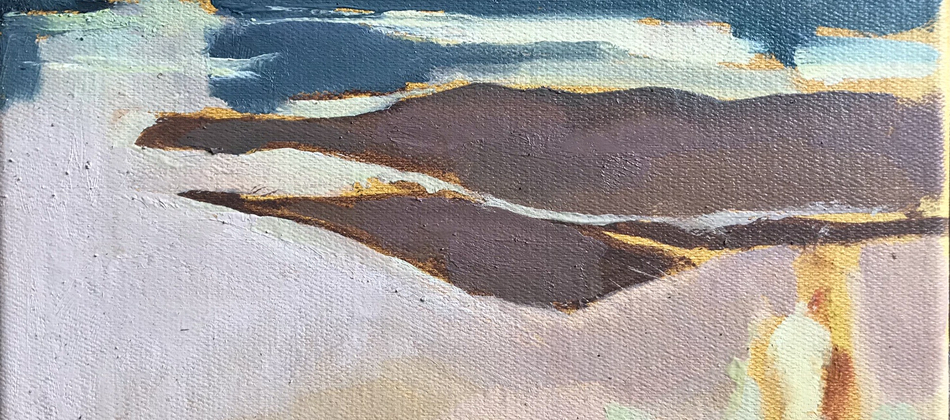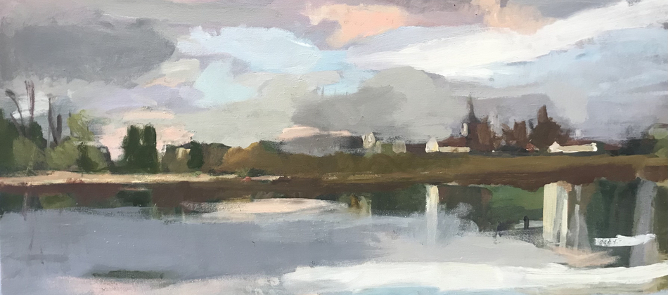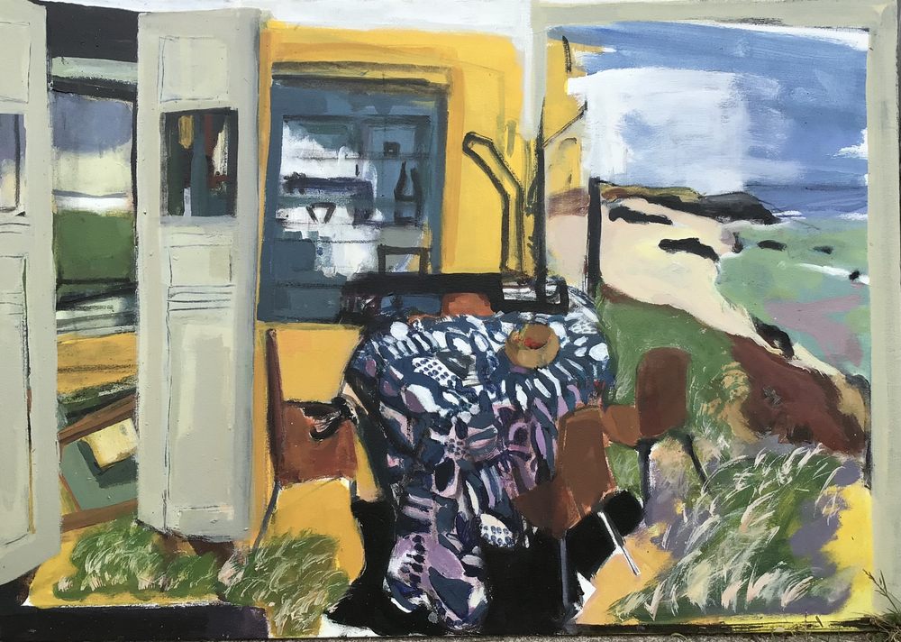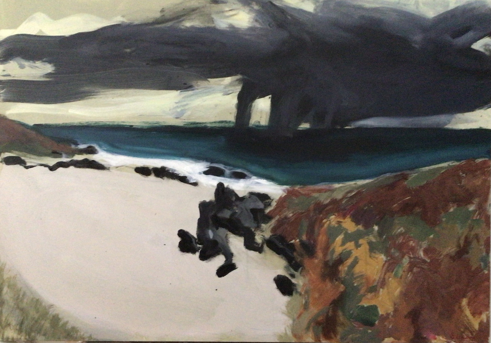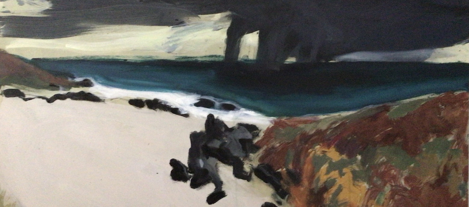 This will be my eighth biennial exhibition at the Coningsby Gallery . This is therefore a good moment to say how much I enjoy exhibiting with them, how generous and friendly the director and team have always been. My up and coming exhibition starts on October 3rd for a week. The title of my show is Shorelines . I live by the sea and when I am not by the sea I am by the river Loire in France. In February of this year I spent a month on the Hebridean island of Colonsay again spending much of my time drawing on the shore ,never far from the shore. I like to work on the spot out in the elements. I think working directly gives one an insight into the true colour and shape of a place and it’s changing constantly of course which becomes part of the challenge. An intimacy can form between the painter and the landscape /seascape that is impossible through just the photographic image. The photo is a wonderful tool but it’s not one’s own vision at all. With one’s own looking come one’s thoughts that break into the mind all the time so the painting, the mind and the subject all are happening together . I very much enjoy another method of making a picture which is bringing together the elements of a place from memory ,drawings and photos and making them work away from the subject. This is how I painted the House on Balerominmhor painting in this exhibition . It’s a long and arduous route full of frustration but ultimately very satisfying if it does “come together “ as a painting . As a painter I have never stuck to one way of doing things indeed as I get older I feel freer to experiment . As an art student I had very fixed ideas about picture making and was a huge devotee to Cezanne . I still admire his work enormously, he worked so hard throughout his life and ended up doing some sublime paintings , his late work is still as new today as it was then. Sitting for hours by La Loire has been and is a wonderful and privileged experience. During lockdown in the Autumn of 2020 I worked on cardboard that was around ,taking it off the street too if I saw a piece I knew would be good to work on. Several of those cardboard paintings are in this show. Shops were closed at the time and materials hard to find ! Other paintings of the Loire became more abstract when I was concentrating on the surface and reflections. Lastly there are a few shorelines paintings of South Devon where I live. Storms and wild seas painted directly from the rocks or cliffs.