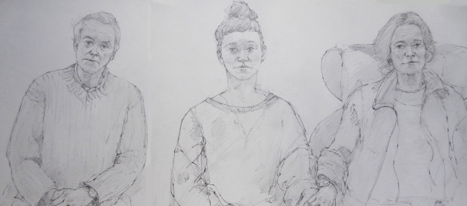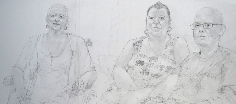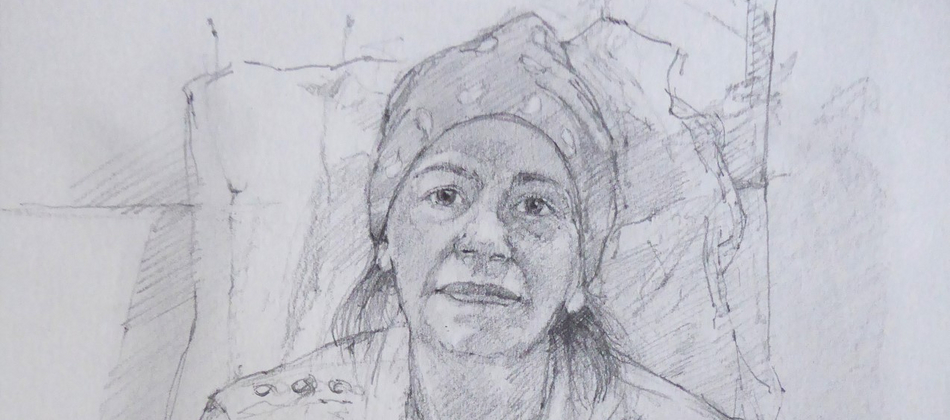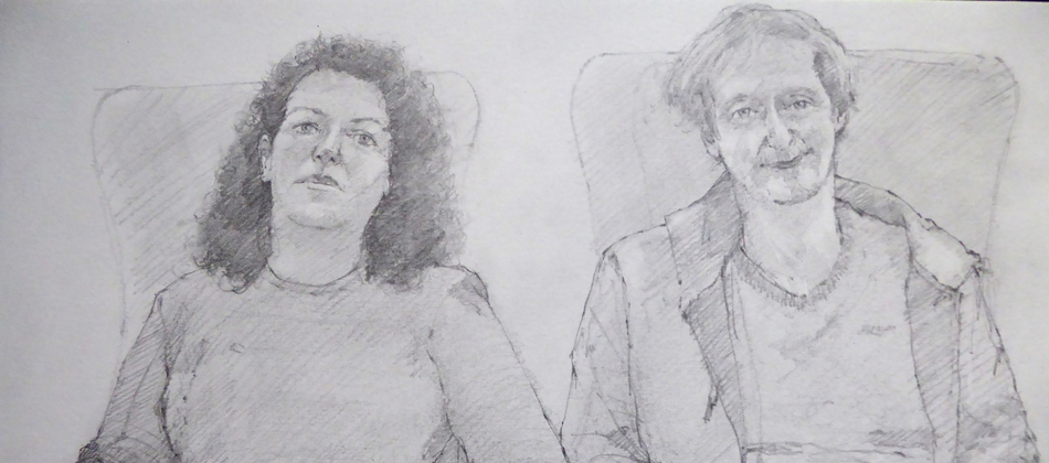 Artist Simon Tolhurst is pleased to announce an exhibition of drawings made during a residency for Haematology Cancer Care, UCLH Charity, from 2013-2023. Exhibited artworks are portraits of patients undergoing treatment for cancer or haematological conditions at University College London Hospitals NHS Foundation Trust. Portraits were created during chemotherapy or other treatments and often include the patient’s loved ones in double or group portraits. The Portrait Project has been featured in national and local press, BBC and ITV online news. The BBC have made two short films about the project, the first in 2017 titled ‘The Artist Who Draws Cancer Patients’, and in 2023 for BBC ‘The One Show’, a film with Victoria Derbyshire, by Topical Productions.