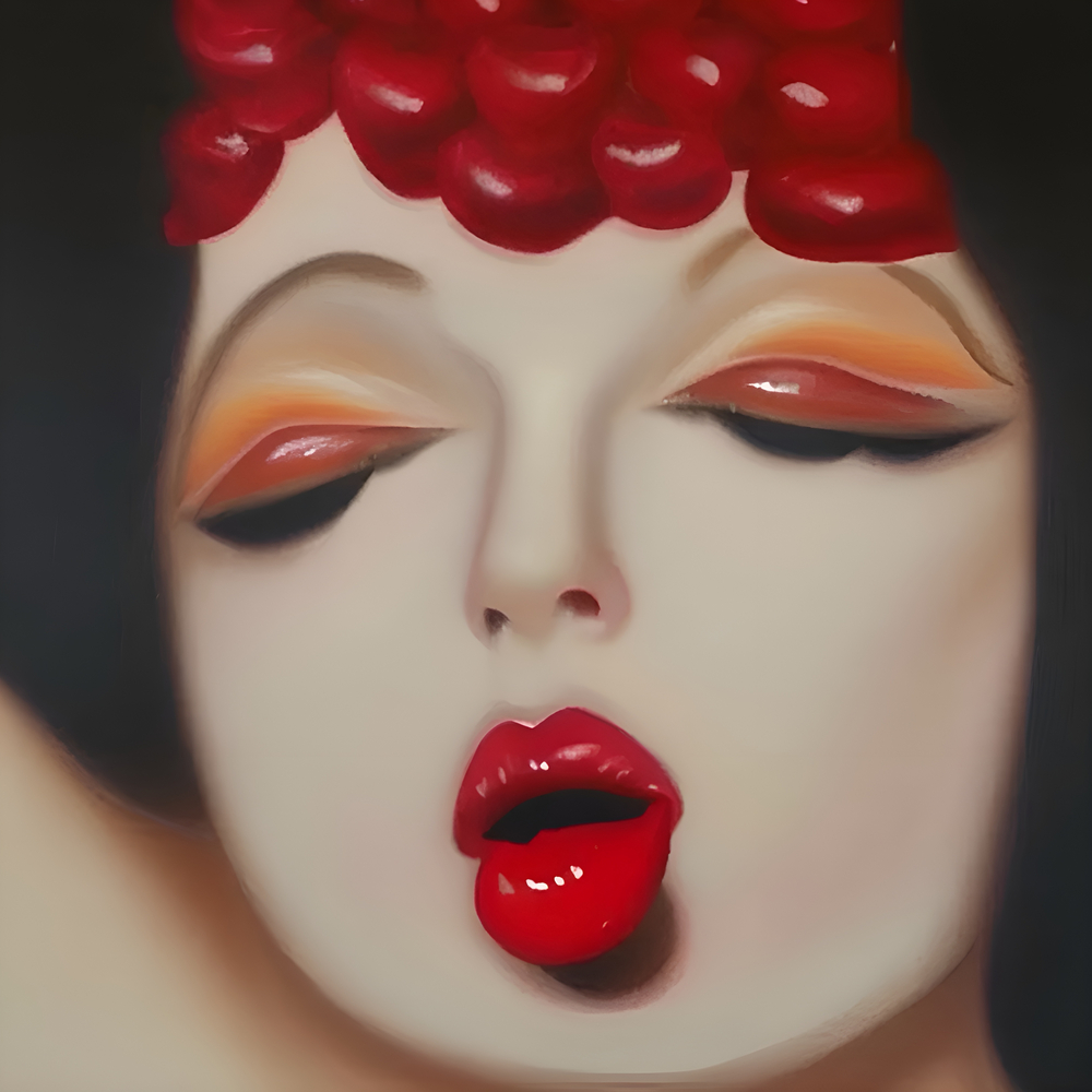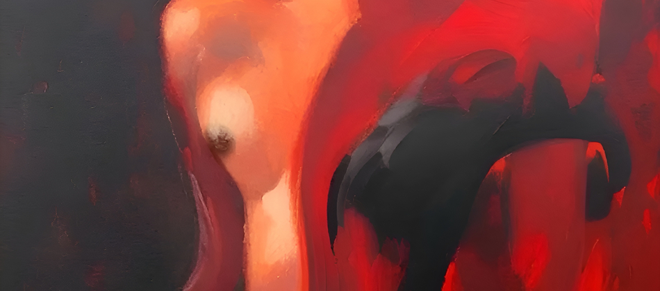 Aigul paints using oil on canvas, predominantly employing a palette of red, black, and white hues. Her artistic style is characterized by deeply existential themes, which she often explores through experimentation with abstraction and cubism. Above all, she has a particular affinity for the color red, which she views as powerful and highly expressive.