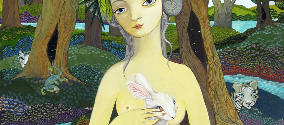 Melissa Launay’s first solo exhibition at The Coningsby Gallery captures her at a point which not only defines her love of myth, nature and fantasy, but also refers to Oriental miniature painting and the warm, vibrant hues of the Arab World. She cites artistic sources ranging from Sandro Botticelli, Gustav Klimt, Henri Rousseau, Frieda Khalo and the German illustrator, Olaf Hajek, all of which inform her work.