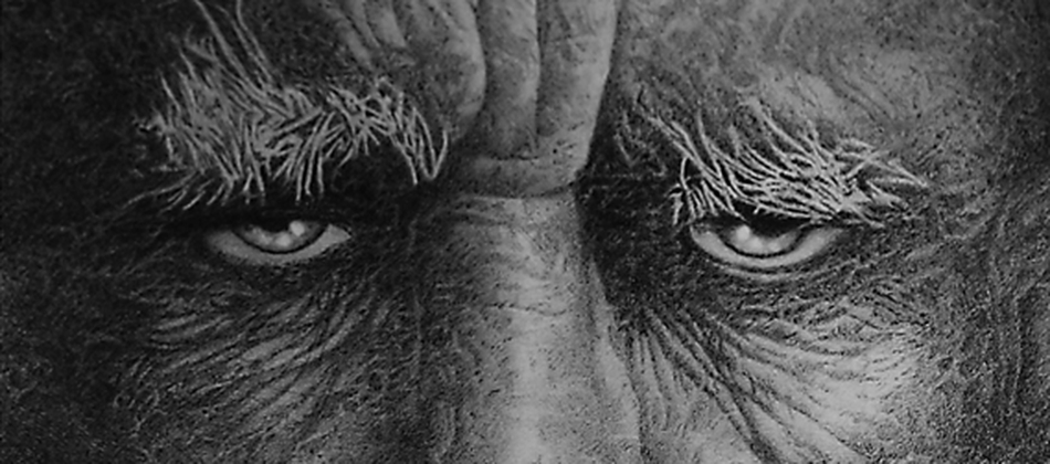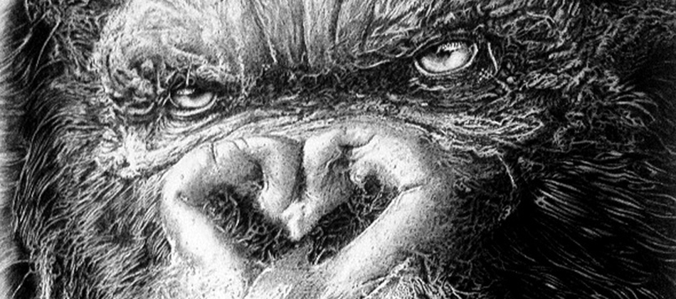 The show features 13 or 15 large size black ink portraits - including large representations of animals such as elephants and gorillas - from different cultures, created over a period of 6 years, between 2010 and 2016.