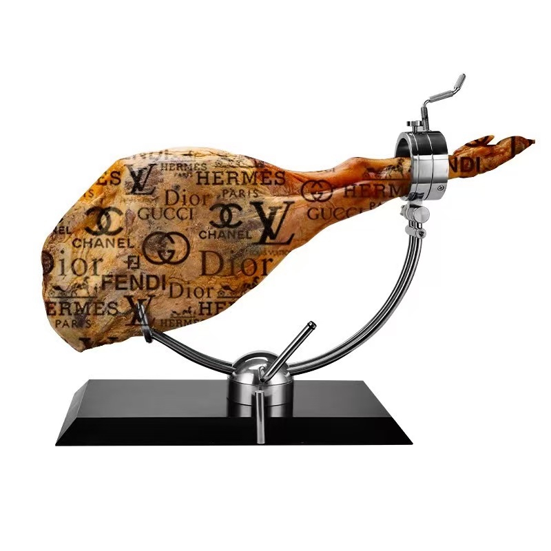 Consumption Cindy’s practice interrogates how consumerism reshapes the relationship between object and subject, asking what it means to be human in an age of simulacra and spectacle. In Learning is a Painful Process, I taught a pig to recognise luxury brands, later transforming its leg into ham branded with fashion logos. The work critiques how consumption turns life into a symbol, colluding with patriarchy to oppress women through invisible forms of violence, what Foucault called “capillary ecologies of power” that saturate the air we breathe.