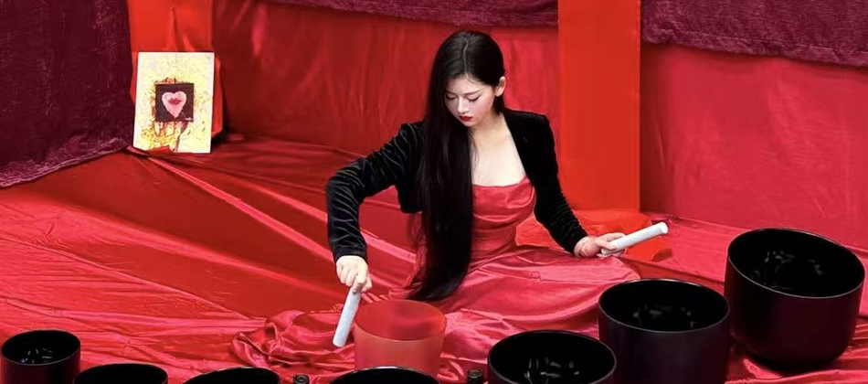 Cindy Yao (born in China, based in London) is a multidisciplinary artist working across performance, installation, painting, and sound. Her early practice interrogated how the female body is shaped and consumed within systems of patriarchy and capitalism, critically engaging with the politics of the gaze and symbolic structures. In recent years, her focus has turned inward - toward the spiritual body as a vessel of energy. Red emerges as a recurring motif, through which she explores the intersections of love, healing, and death. Through meditation, ritual performance, and collective resonance, Yao transforms personal experience into shared energetic fields, allowing art to become a luminous channel for reimagining intimacy and reconnecting with the soul.
