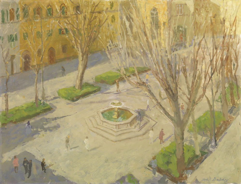The painted world of Fred Dubery was all about warmth and colour – a bright pattern of life reflecting a private place of beauty, pleasure and merriment. Known from numerous solo exhibitions and regular showing at the Royal Academy and New English Art Club, the pictures are a record of joyful travels in France and Italy and, best of all, of domestic contentment via a long and happy marriage amid a visual feast, and a procession of amazing meals, in a lovely Suffolk setting.