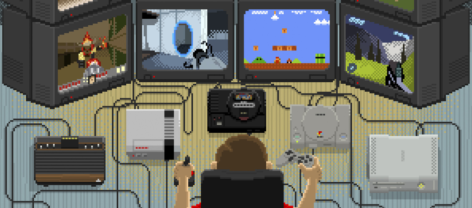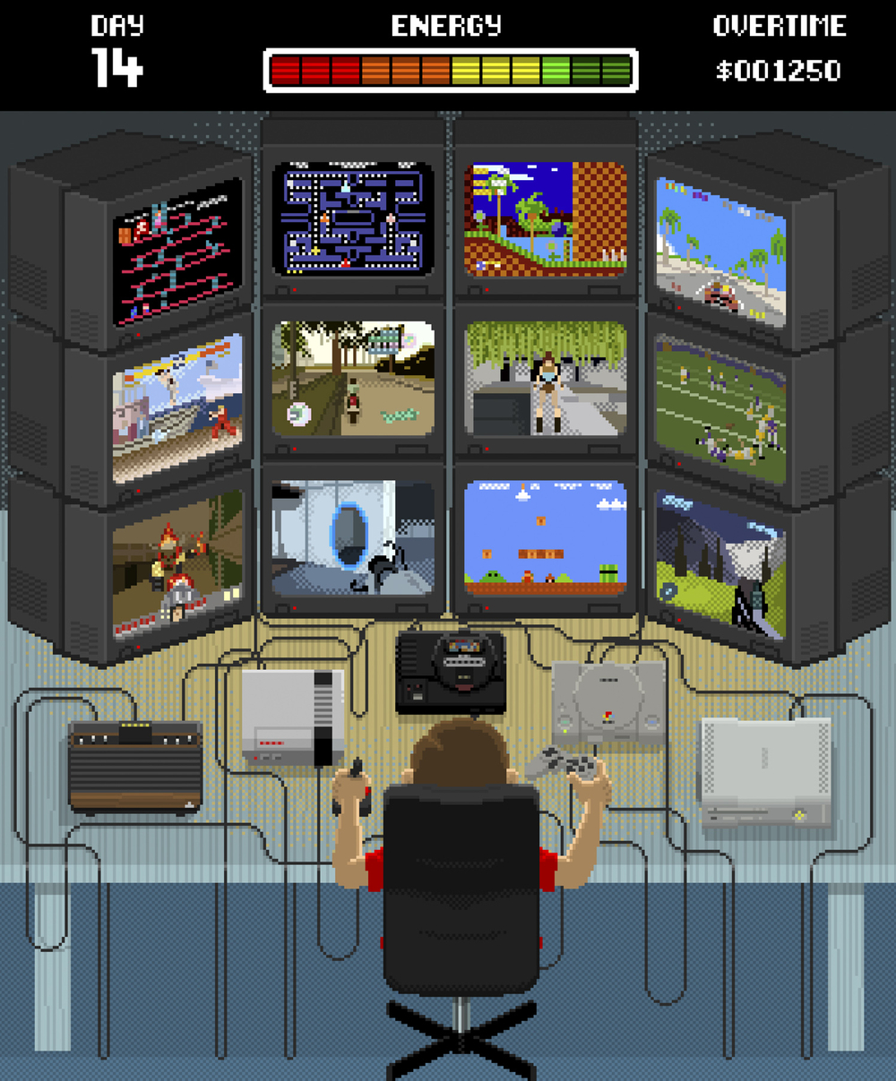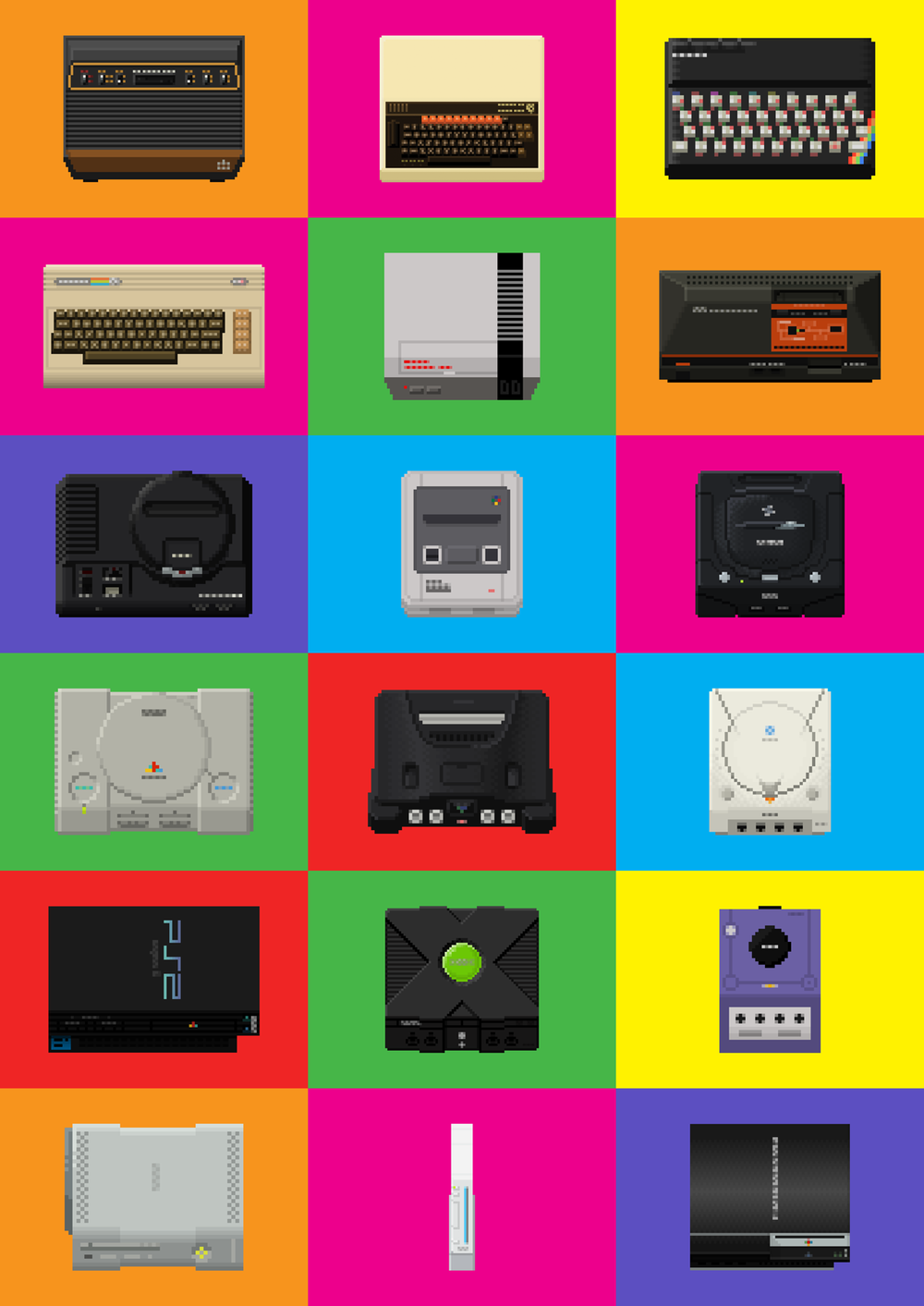 20 GOTO 10 is an exhibition of Walter’s pixel-based illustrations and animations from 2012 to present. The show comprises of both original creations and commercial work for the likes of GQ, Maxim, Men’s Health, The Atlantic, Harvard Business Review, The Guardian and Edge Magazine.