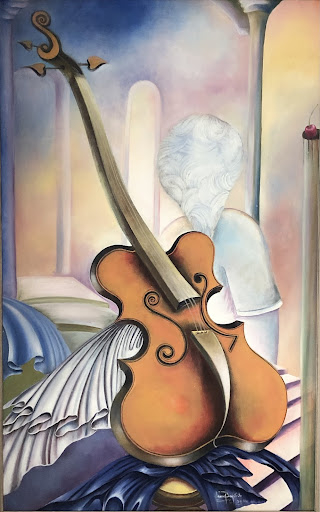 Medium: Acrylic on canvas Frame: Light wood Signed: Lower right