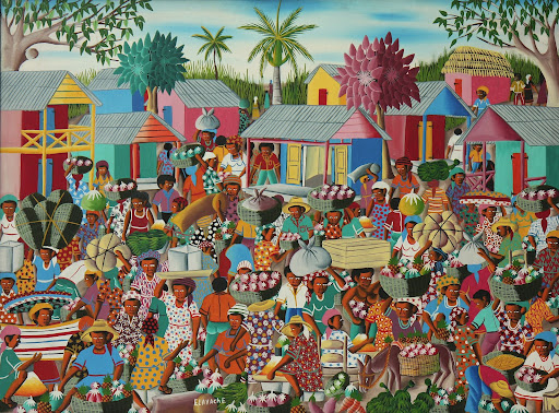 Edgard Lavache is a Haitian-born painter who mostly paints the market scenes in a primitive style.