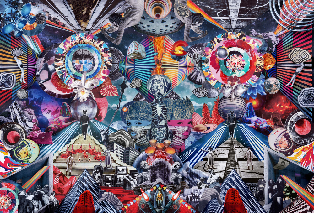 A signed large giclée print of a hand made collage printed on Xativia 230g stock.