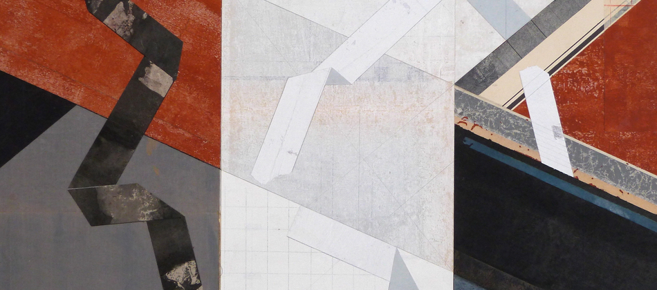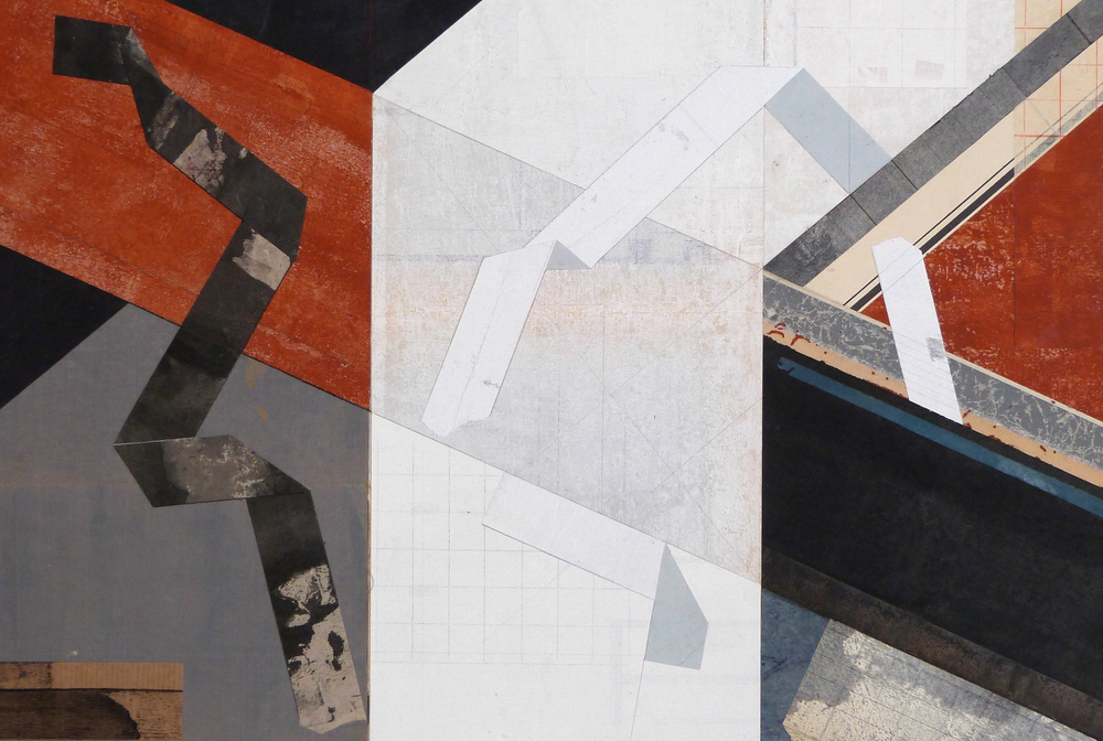 Paper collage with acrylic paint and painted threads, 2014 -15