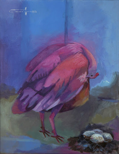 Medium: Oil on canvas Frame: Gold painted wood Signed: Top left, dated 1992