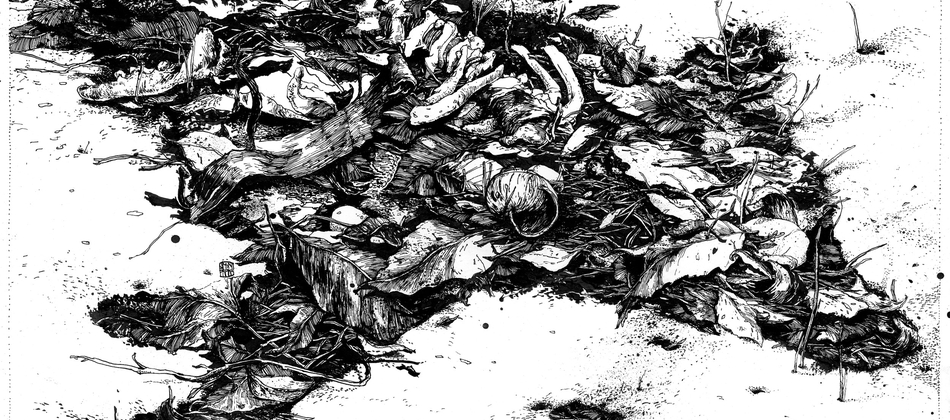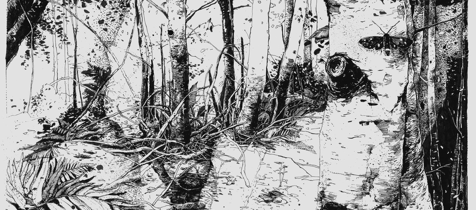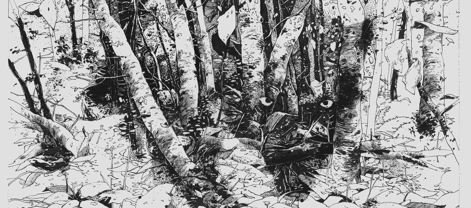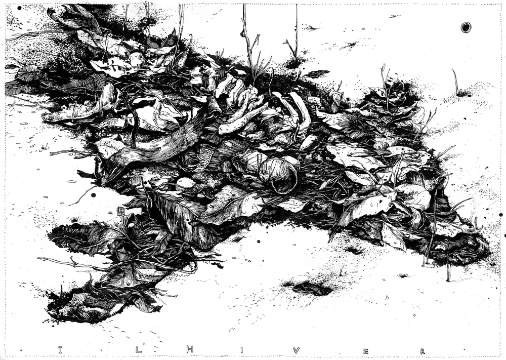 A series of 3 original framed ink drawings by Simon Prades.
