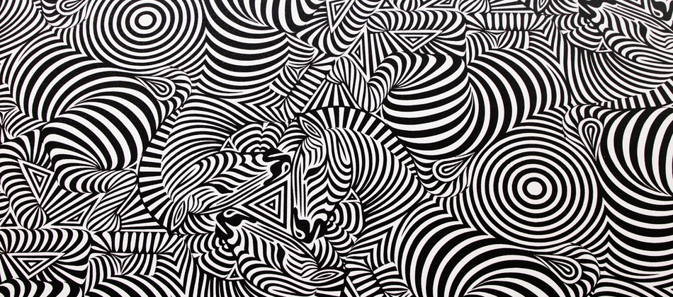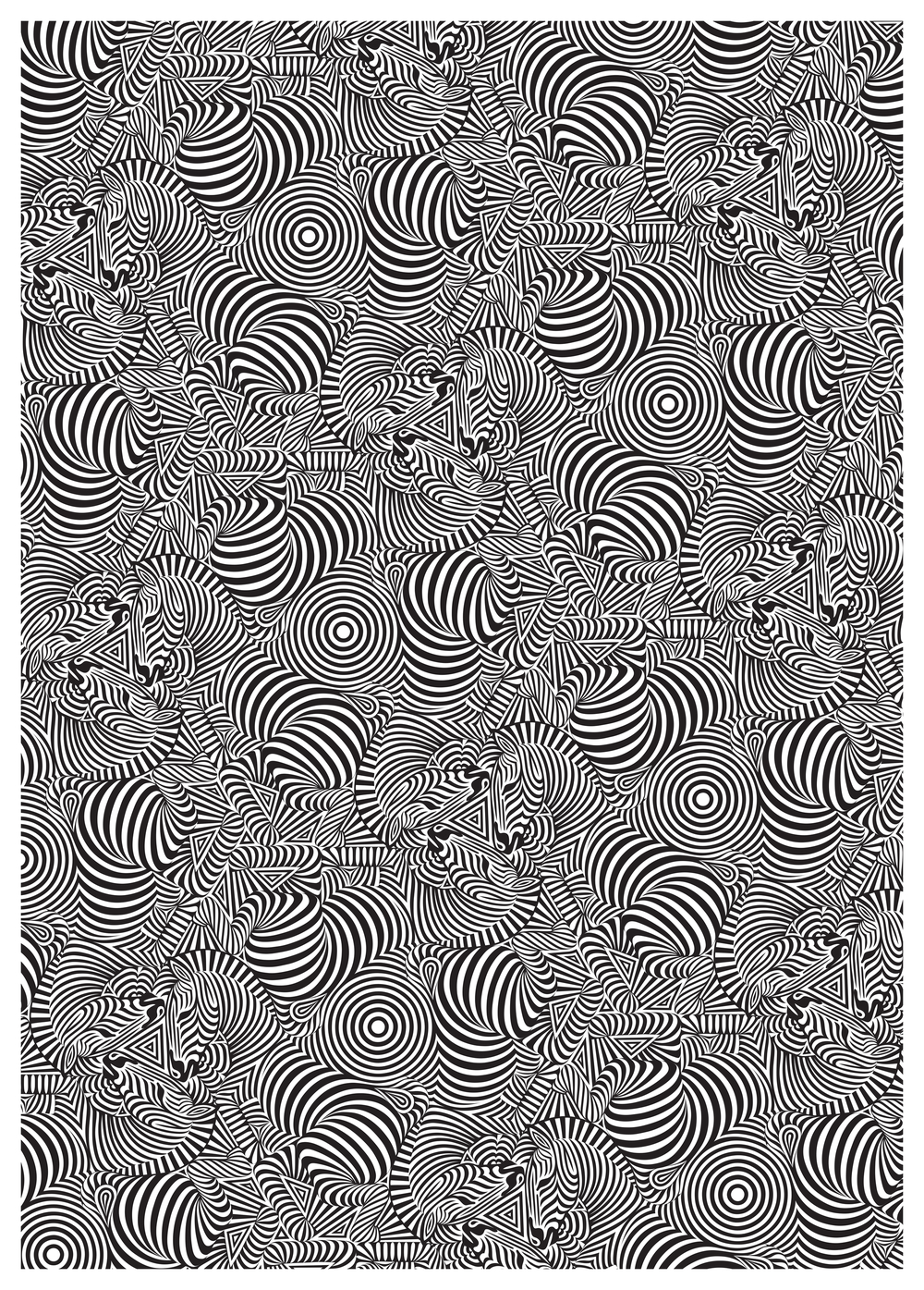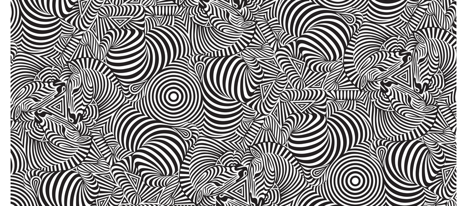 Optical illusion Zebras. Signed limited edition prints, unframed. Black silkscreen print on white paper 352gsm