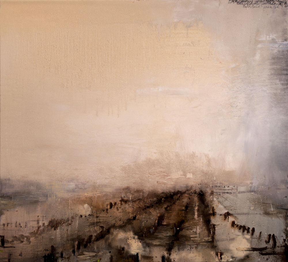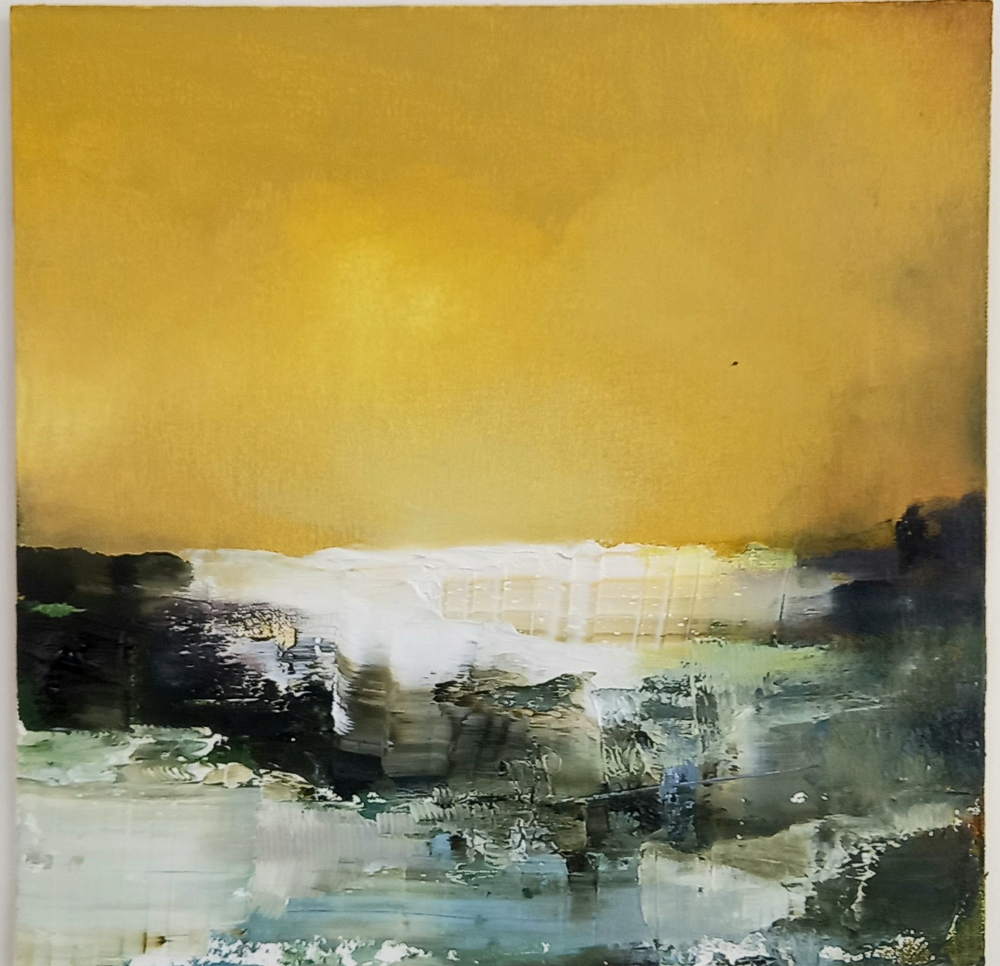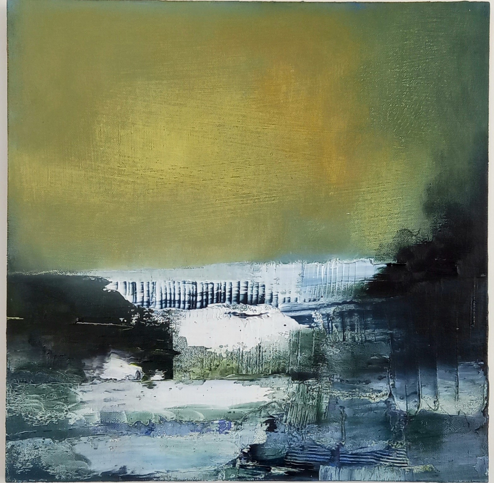 To use the phrase EARTHLAND as the title for this new collection of paintings is to borrow a chapter heading from McFarlane’s Landmarks and I like to think that it has the poetic heft and quality of allusion that I feel about this land across which I walk, cycle and swim. Moors and rivers and estuaries and fields and seas for ever, my body, my mind, our bodies, our minds , our land , EARTHLAND” .