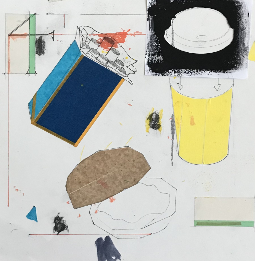 Will’s art practice is broad, including landscape, still life, and graphic design. His enquiries relate to themes such as habit and repeated behavior, routine, rituals and aspects of office culture. Beyond these day-to-day themes Will explores broader related ideas around the nature of life cycles and personal histories. Through a mix of representational drawing, assemblage and printing Will aims to create a diverse visual language through a tapestry of media including old paper, pencil, crayon, tape, ink, letraset, stickers and found material, a form which he sometimes refers to as Retro-Rymans.