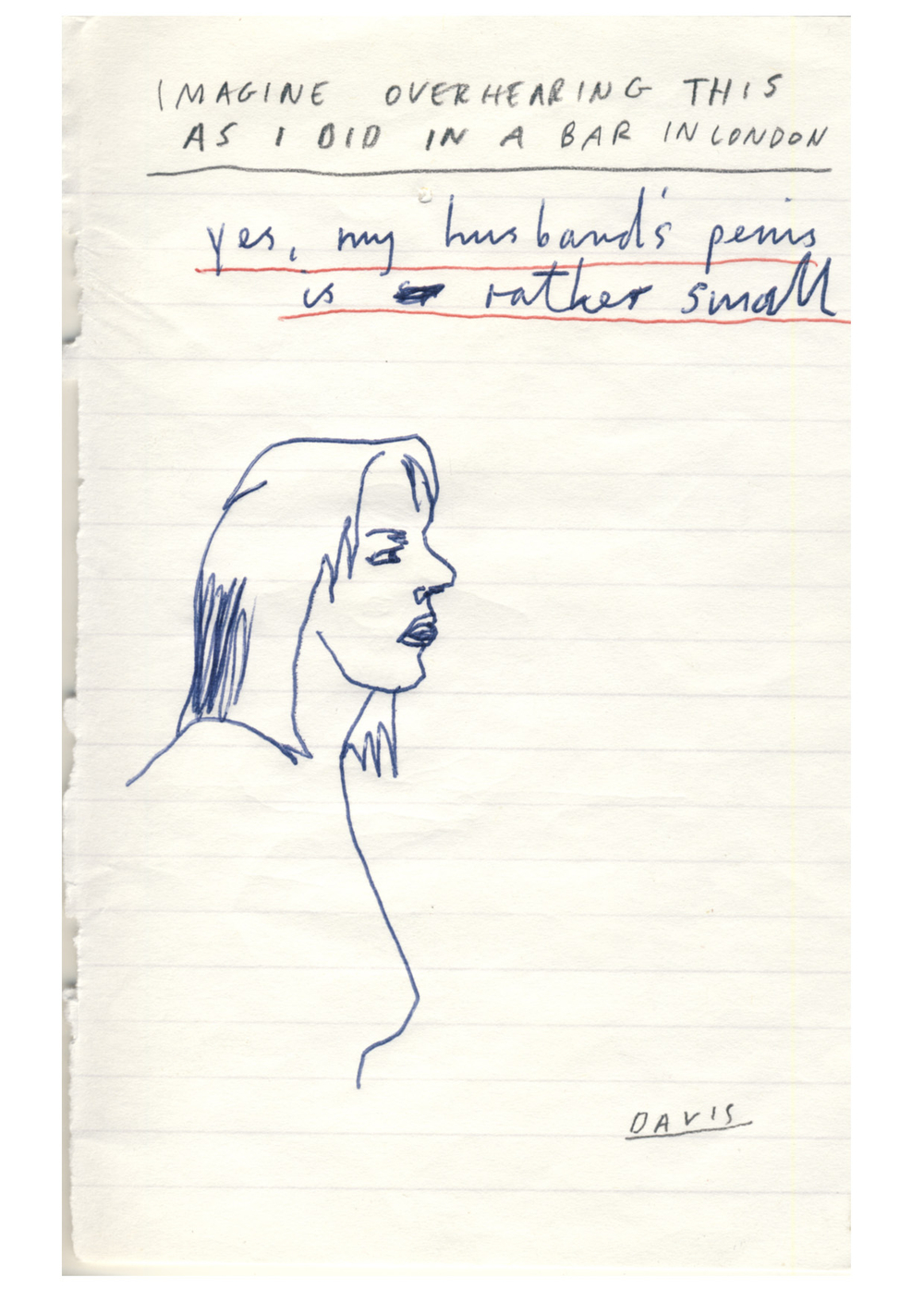 Davis will be showing hundreds of drawings in archive boxes. Some will be framed on the wall. Like most of Davis’s personal work, the subject matter is an attempt to understand the complicated reality of day to day living; love, sex, anger, work, money, people, madness and the other usual subjects, and will be sold employing a new fiscal strategy first cited just before the world markets came crashing down; the accurately named ‘the-munificent-double-dip-recessional-knock-down-generosity-price-structure-©’ otherwise know as the cash flow problematic: